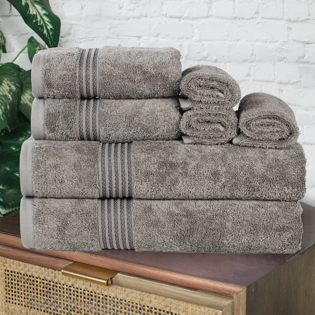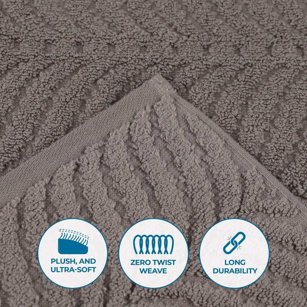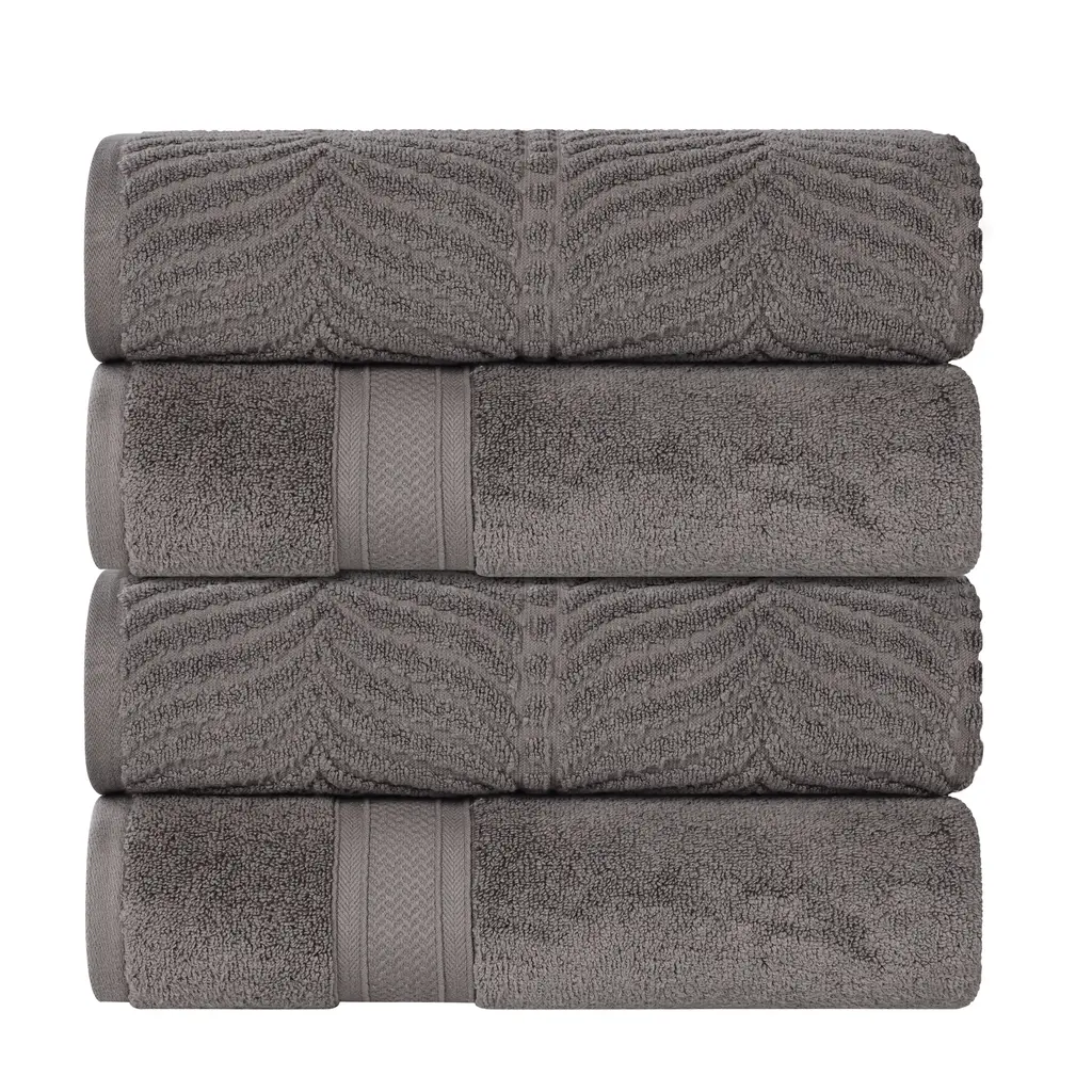 Superior Chevron Zero Twist Solid And Jacquard Cotton Bath Towel Set Of 4 - Charcoal
