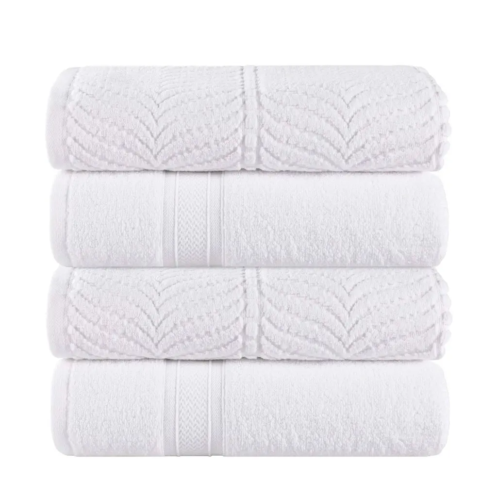 Superior Chevron Zero Twist Solid And Jacquard Cotton Bath Towel Set Of 4 - White