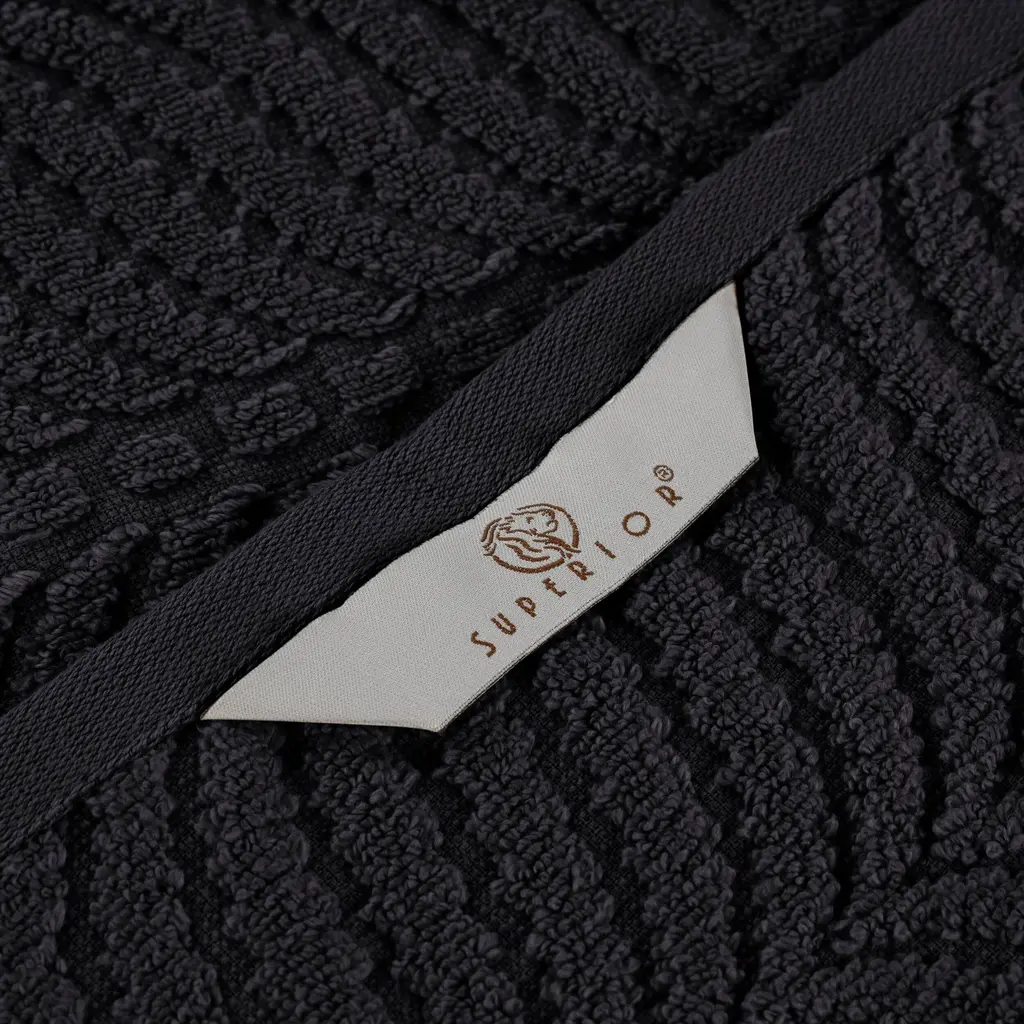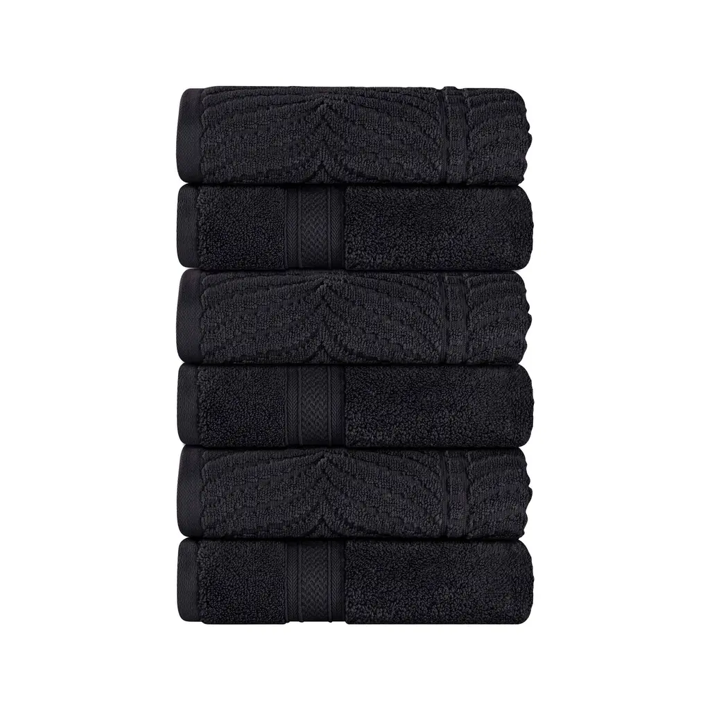 Superior Chevron Zero Twist Solid And Jacquard Cotton Hand Towel Set Of 6 - Black