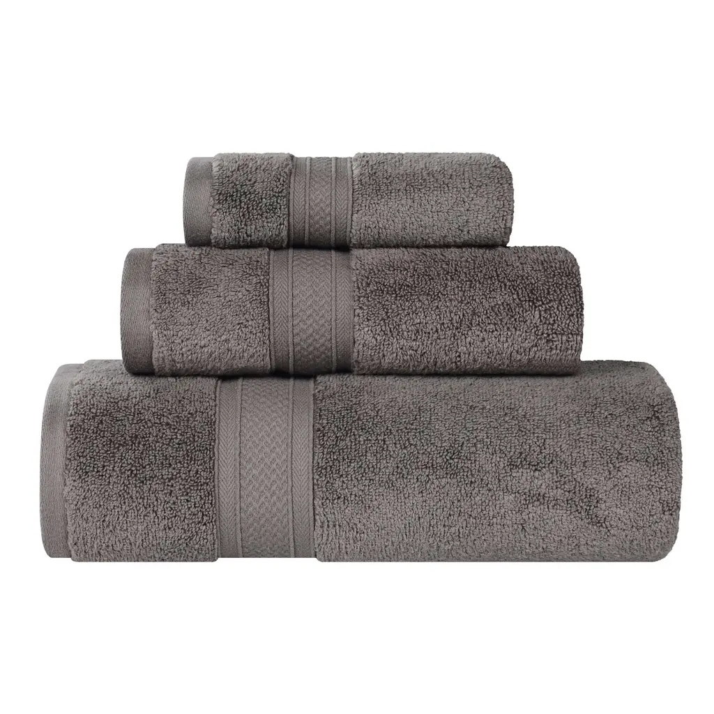 Superior Chevron Zero Twist Solid Cotton 3 Piece Bathroom Towel Set - Charcoal
