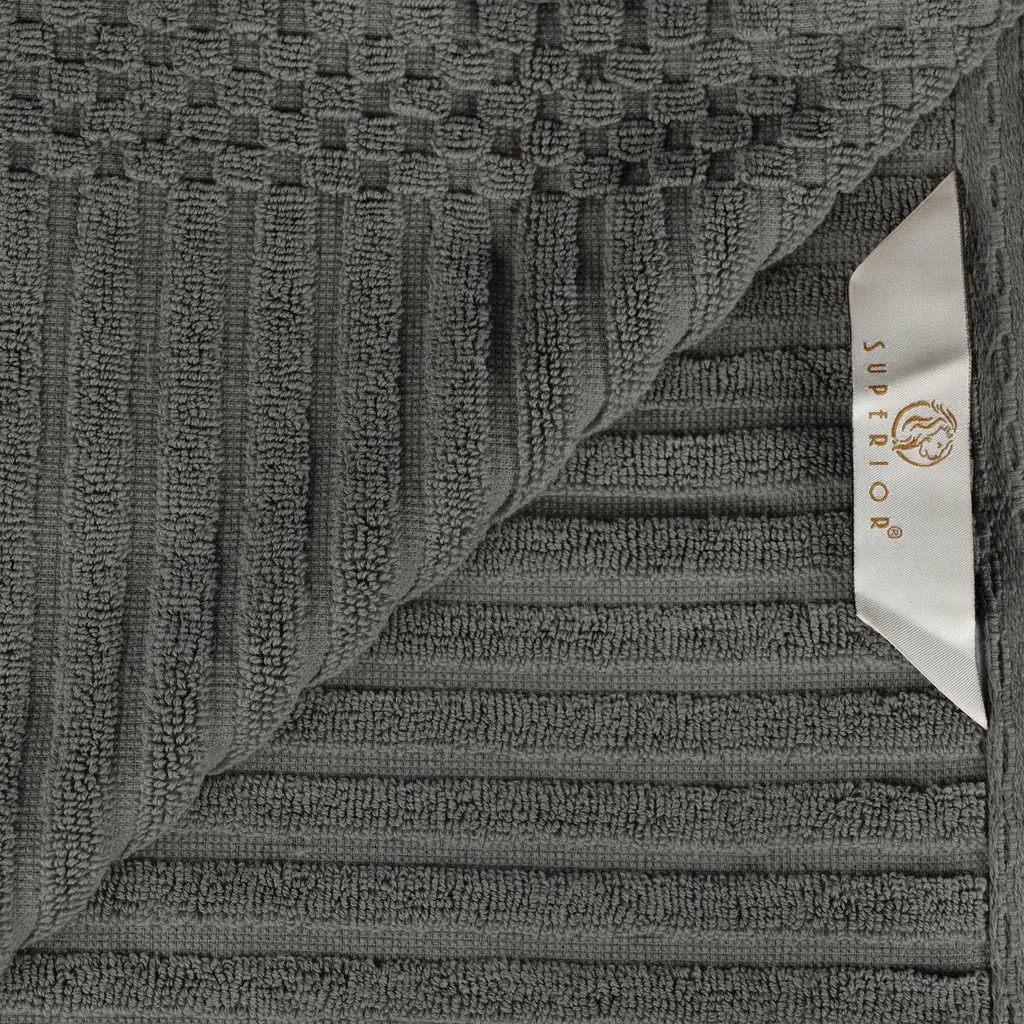 Superior Cotton 12-Piece Solid And Checkered Border Towel Set - Charcoal