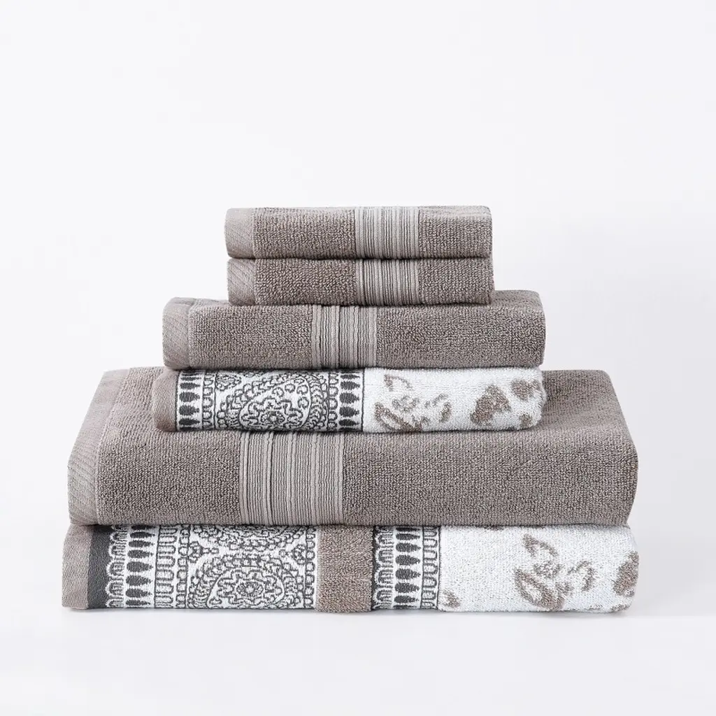 Indulge in the relaxing comfort of the Superior Cotton Quick-Drying Solid and Marble Towel Set each time you step out of the shower or bath. Our medium weight cotton towels have a double-ply design to provide comfort, durability, and versatile absorption. These plush and fluffy towels will sop up moisture effortlessly, keeping you warm and dry. This bath, hand, and face towel set includes a mix of vibrant solid pattern towels and towels with a contemporary marble effect pattern. Finished with a broad 4 inch rope-textured jacquard border and himmed edges, this towel set exudes elegance and luxury resort style. These striking towels come in a variety of colors, including; black, blue, brown, bronze, cyan, grey, terra cotta red, teal, and white to instantly update your bathroom decor.Features:Dimensions: