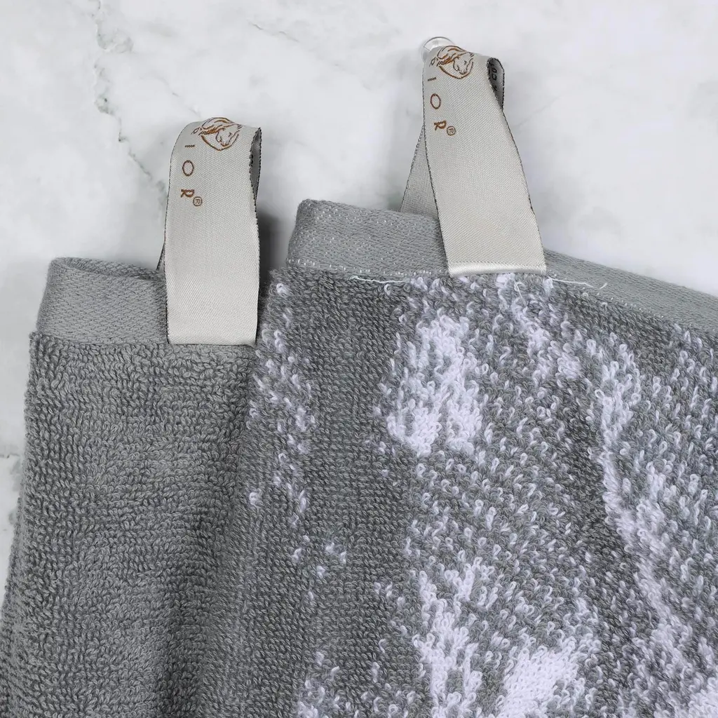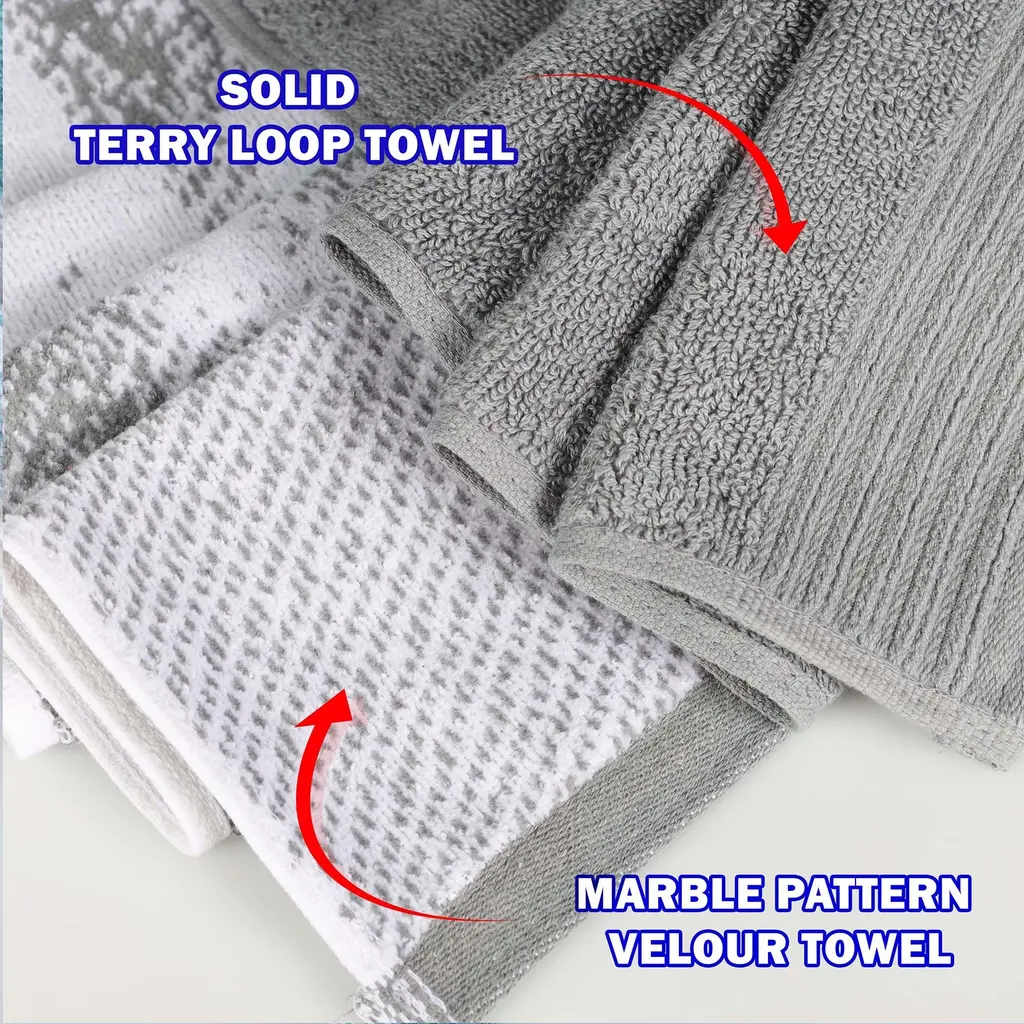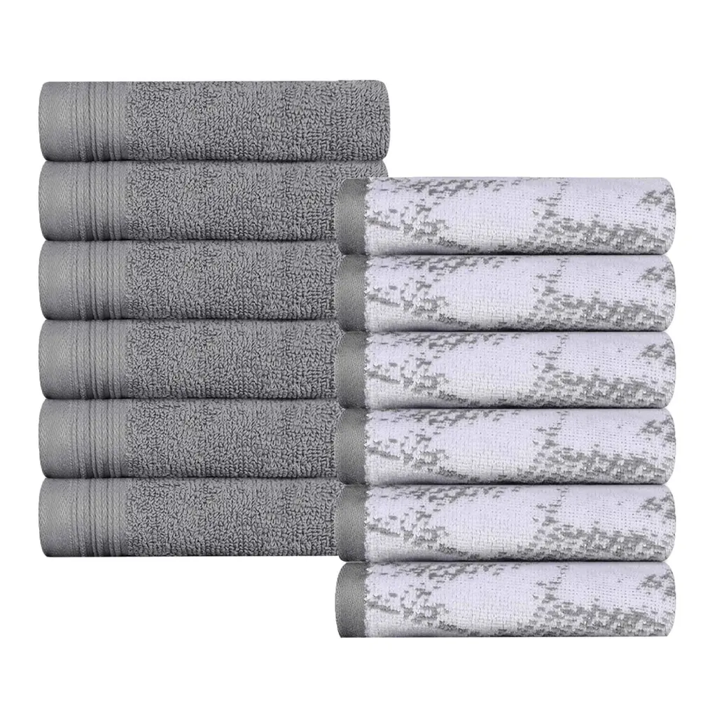 Superior Cotton Solid And Marble Face Towel Set Of 12 - Grey