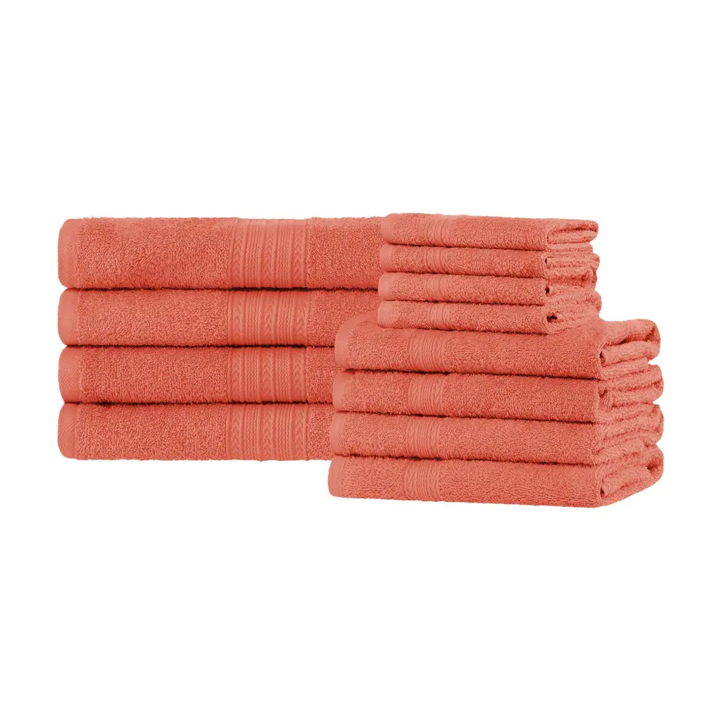 Superior Eco-Friendly Sustainable Cotton 12-Piece Bathroom Towel Set - Rust