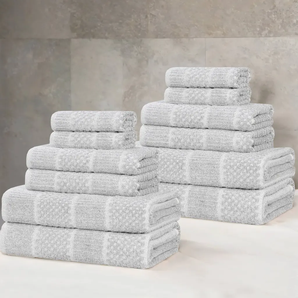 Create a resort-inspired bathroom with the Superior Egyptian Cotton Pile 10-Piece Towel Set. Our most luxurious Egyptian Cotton Pile bathing essentials feature a heavyweight thickness to keep you warm and dry quickly. Each piece in this plush and fluffy set absorbs moisture effortlessly, keeping you cozy as soon as you step out of the shower or bath. Pamper yourself, or reserve this set for guests, while adding a modern flourish to any master bath, powder room, or guest bath. The attached hanging loop allows you to easily hang your towel for quick drying and utmost convenience.Features:Dimensions: