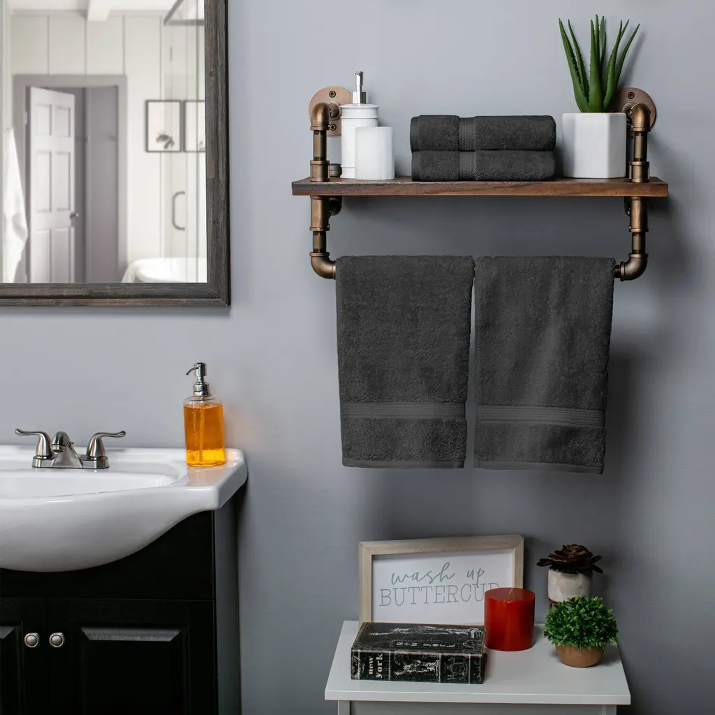 Create a resort-inspired bathroom with the Superior Egyptian Cotton Pile Hand Towel Set. Our most luxurious Egyptian Cotton Pile bathing essentials feature a heavyweight thickness to keep you warm and dry quickly. Each piece in this plush and fluffy set absorbs moisture effortlessly, keeping you warm and cozy. Pamper yourself, or reserve this set for guests, while adding a modern flourish to any master bath, powder room, or guest bath. The attached hanging loop allows you to easily hang your towel for quick drying and utmost convenience.Features: