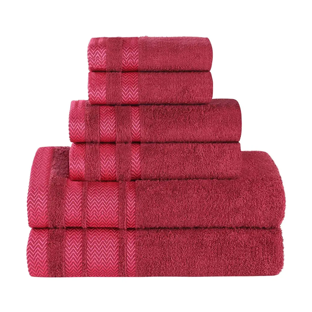 Superior Hays Cotton Medium Weight 6 Piece Bathroom Towel Set - Cranberry