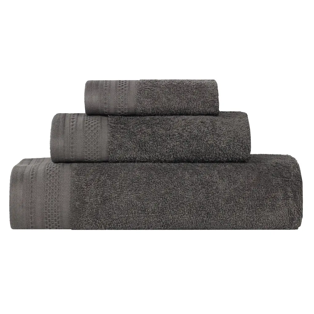 Superior Honeycomb Textured Border Cotton Medium Weight 3 Piece Towel Set - Gunmetal
