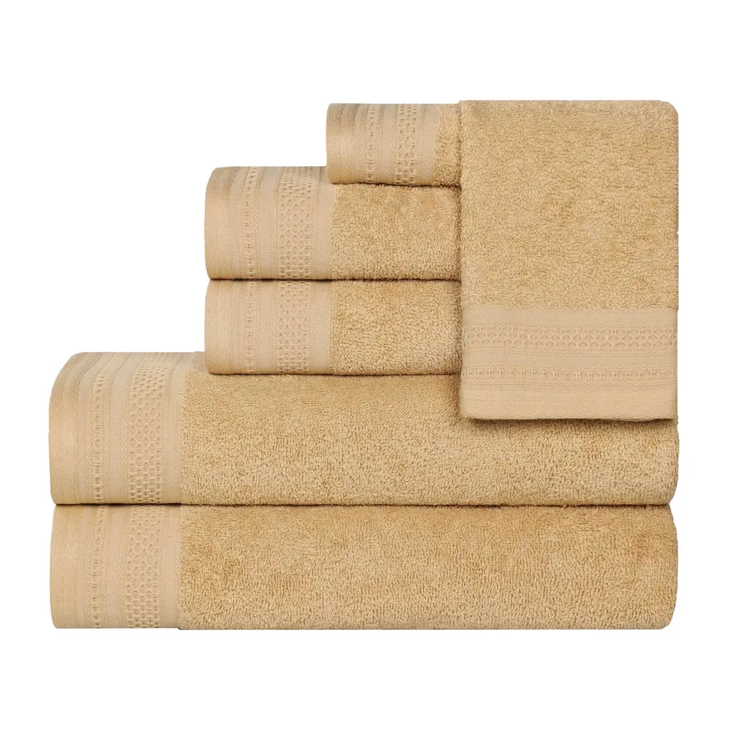 Superior Honeycomb Textured Border Cotton Medium Weight 6 Piece Towel Set - Gold