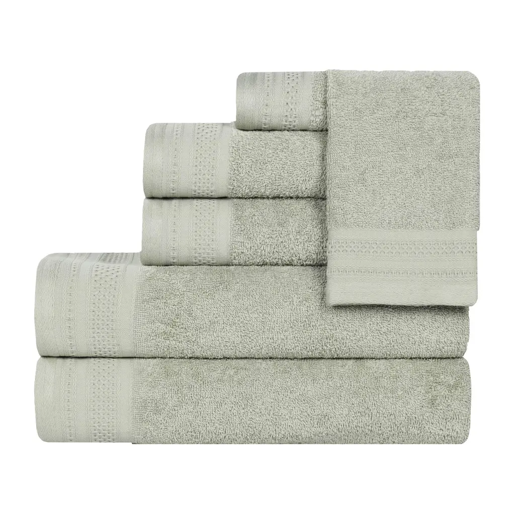 Superior Honeycomb Textured Border Cotton Medium Weight 6 Piece Towel Set - Sage