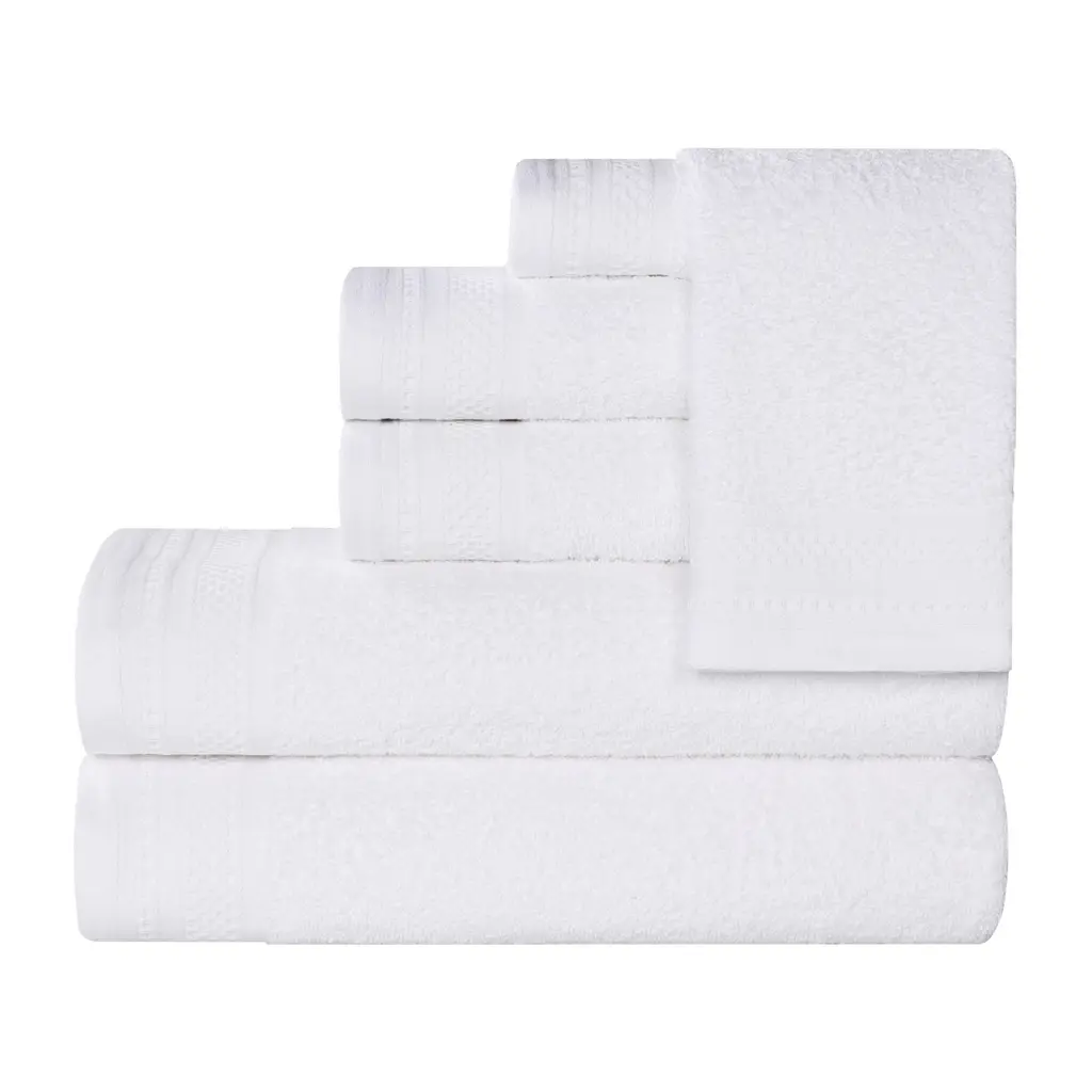 Superior Honeycomb Textured Border Cotton Medium Weight 6 Piece Towel Set - White