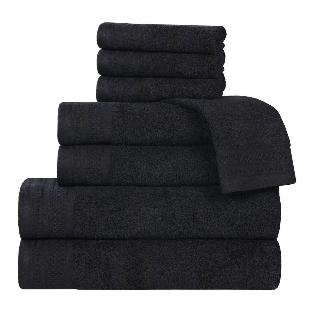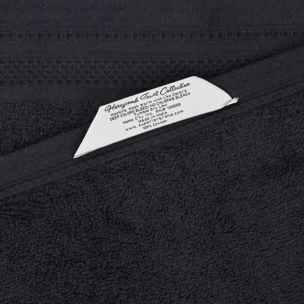 Superior Honeycomb Textured Border Cotton Medium Weight 8 Piece Towel Set - Black