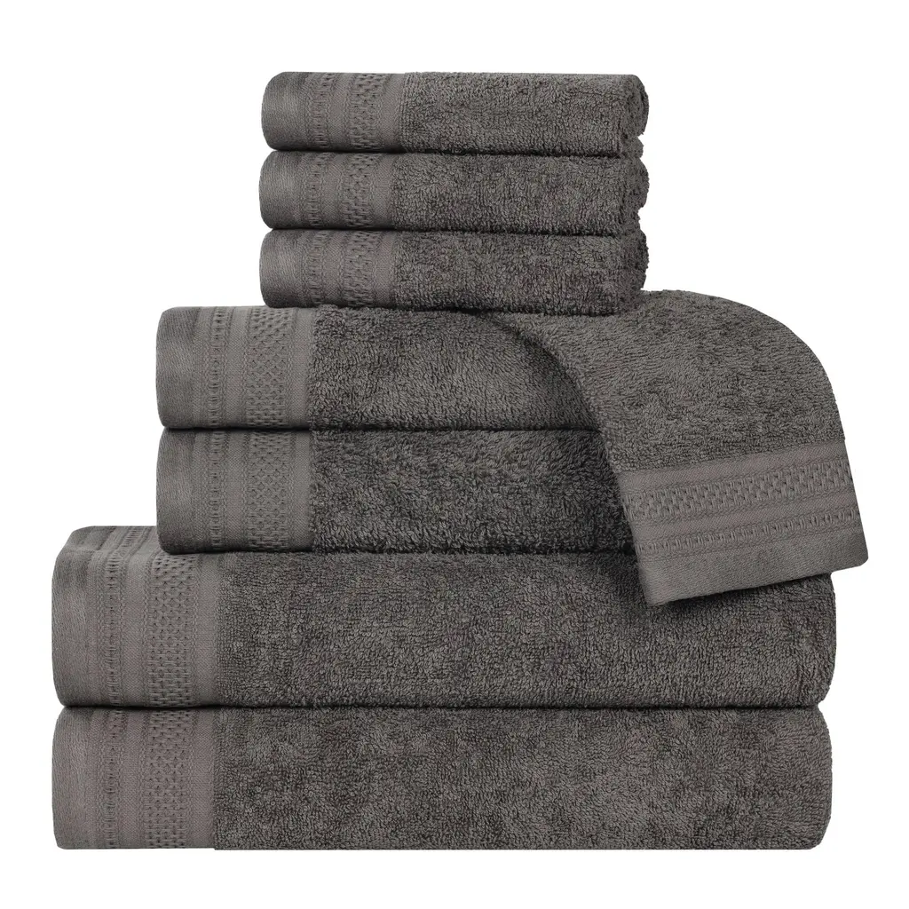 Superior Honeycomb Textured Border Cotton Medium Weight 8 Piece Towel Set - Gunmetal