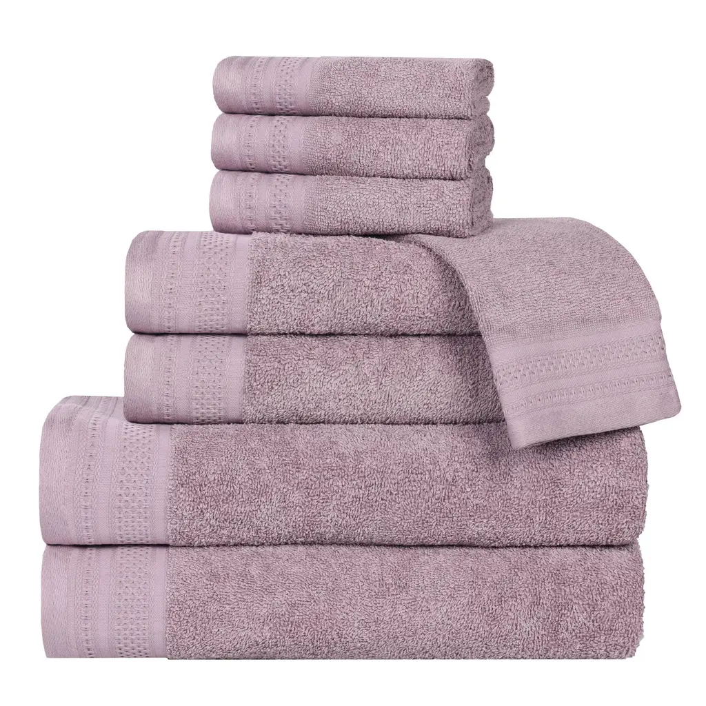 Superior Honeycomb Textured Border Cotton Medium Weight 8 Piece Towel Set - Sea Fog