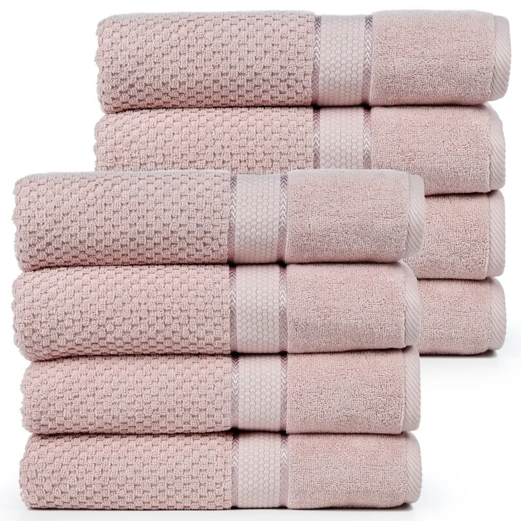 Superior Honeycomb Waffle Border 8 Piece Towel Set: Embrace sustainable luxury with our OEKO-TEX certified 8 Piece towel set. Indulge in the plush, fluffy softness of 100% sustainably sourced cotton, knowing that you're making a responsible choice for the environment. These durable, medium-weight towels feature an elegant honeycomb border, elevating your bathroom decor while contributing to a healthier planet.Features:Dimensions: