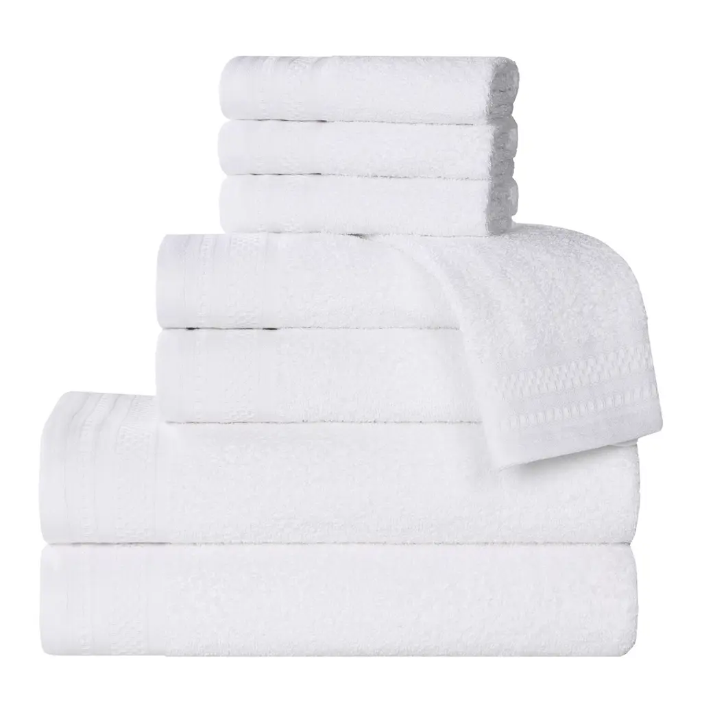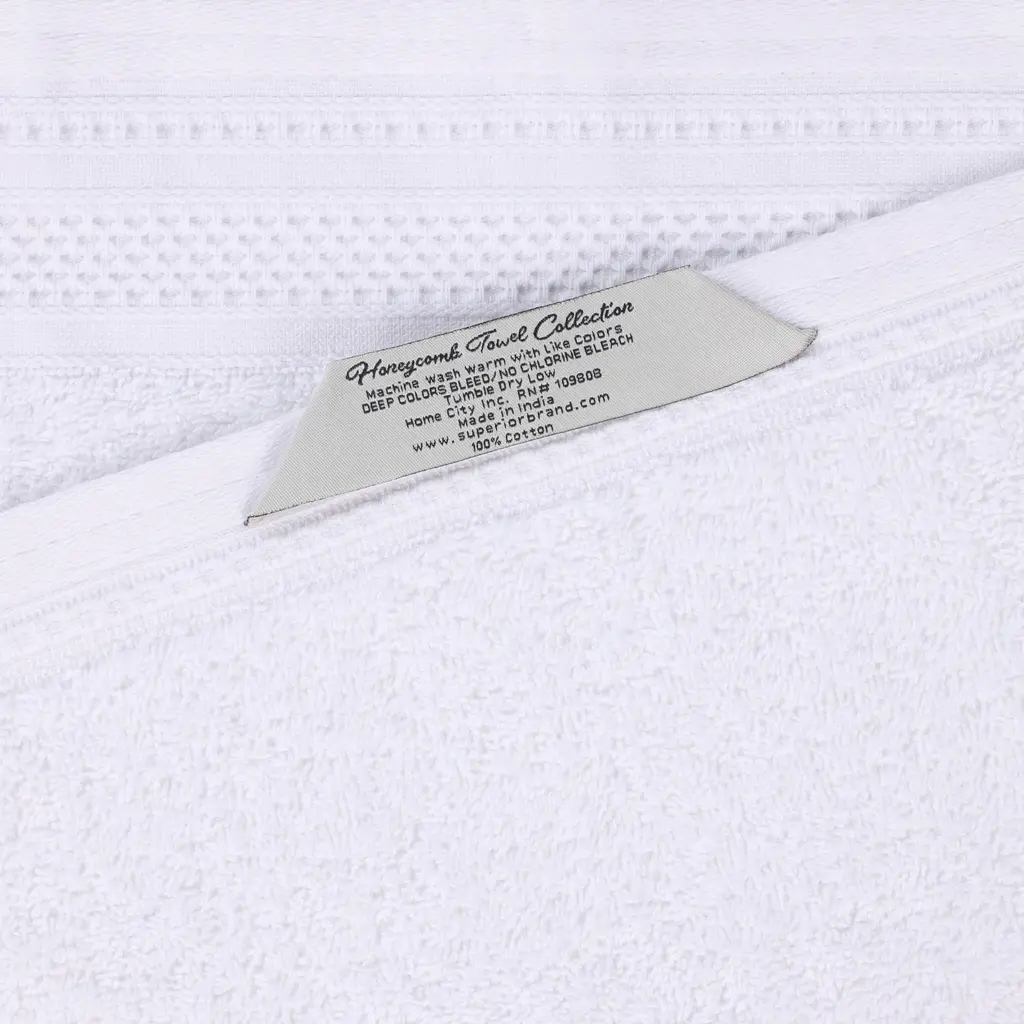 Superior Honeycomb Textured Border Cotton Medium Weight 8 Piece Towel Set - White