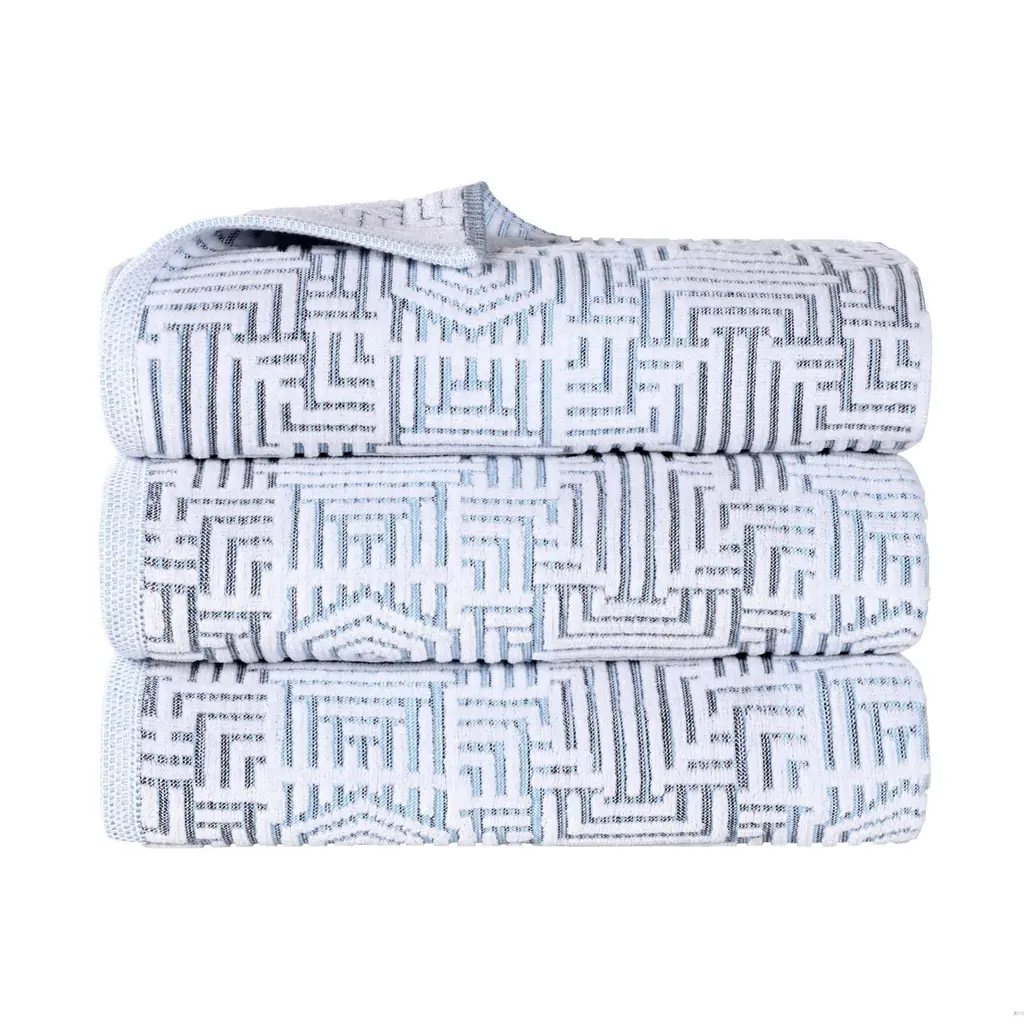 Superior Jasper Cotton Modern Geometric Jacquard Bath Towel Set Of 3 - Blue