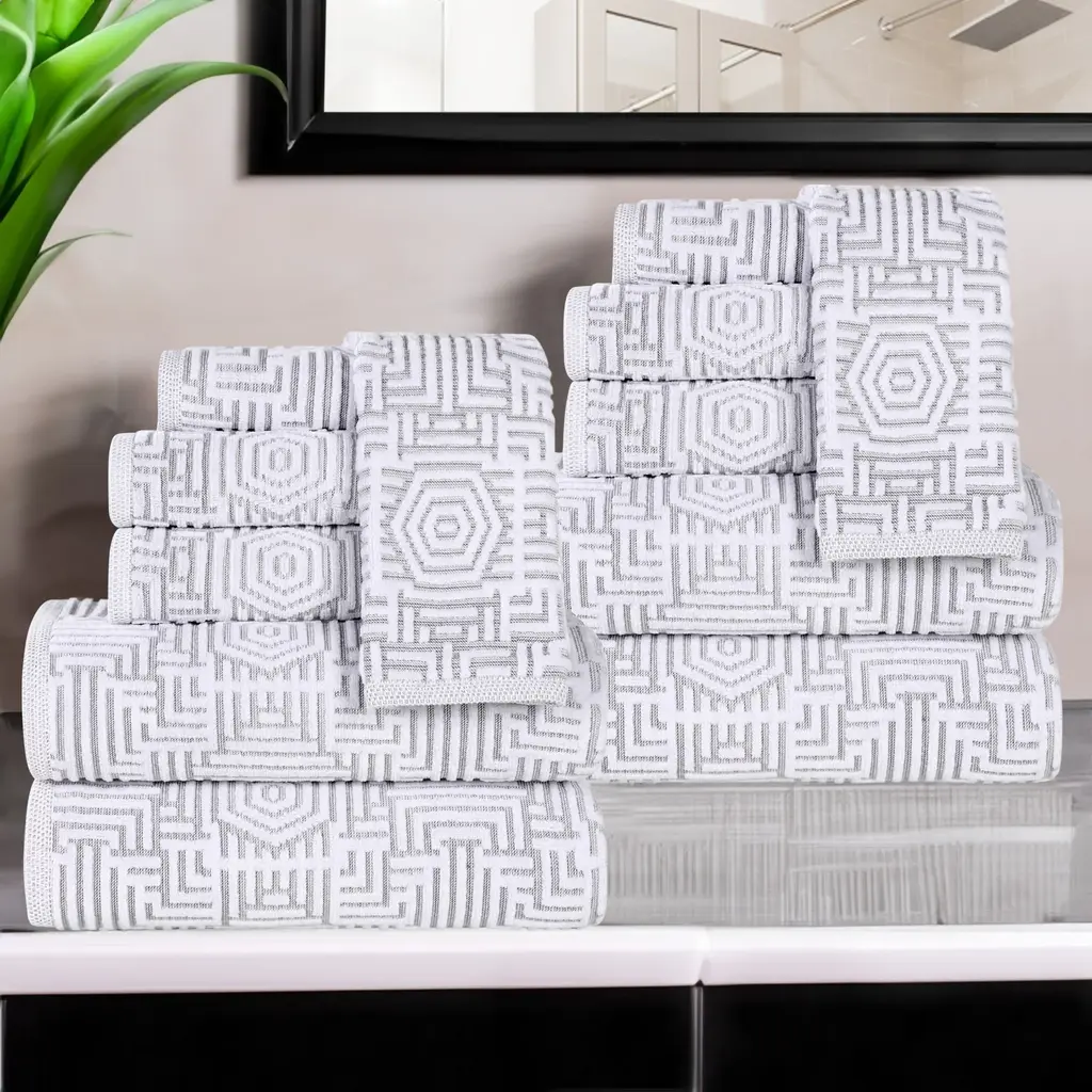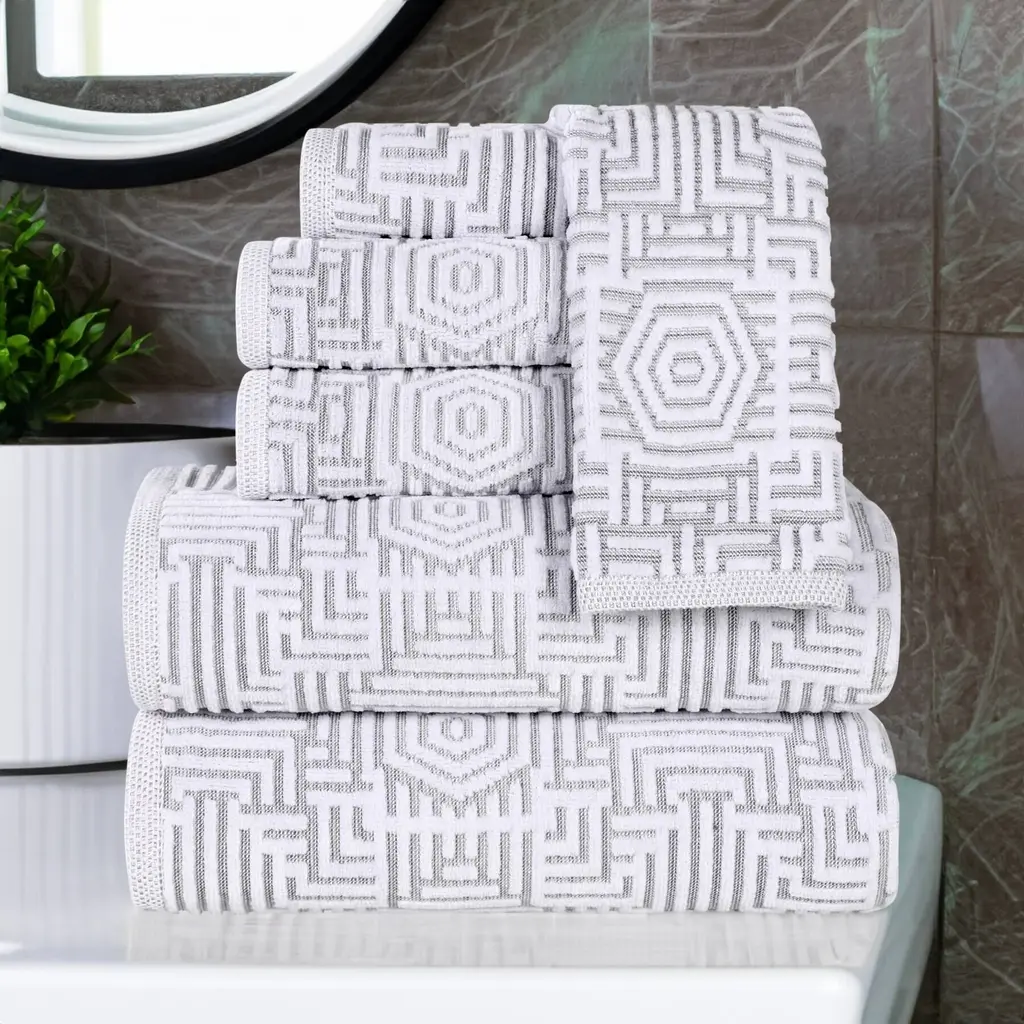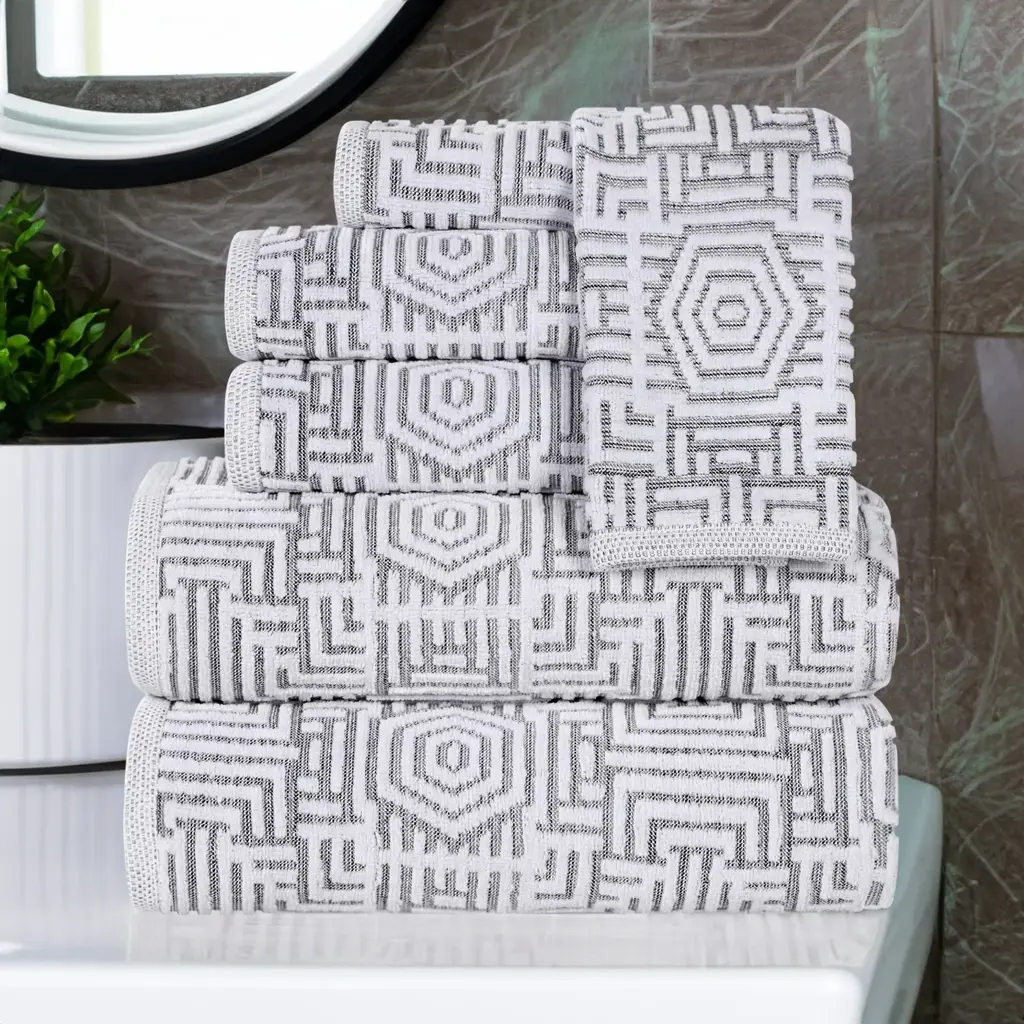 Rejuvenate your bathroom experience with the indulgently soft Superior Jasper Cotton Modern Jacquard Soft 9 Piece Bathroom Towel Set. Our medium weight cotton towels provide comfort, durability, and versatile absorption, perfect for the shower, bath, or beach. These plush and fluffy towels will sop up moisture effortlessly, keeping you warm and dry. Featuring a geometric jacquard design, these elegant towels are available in a variety of color options to seamlessly match your bathroom style. This bathroom towel set includes; 3 face towels, 3 hand towels, and 3 bath towels.Features:Dimensions: