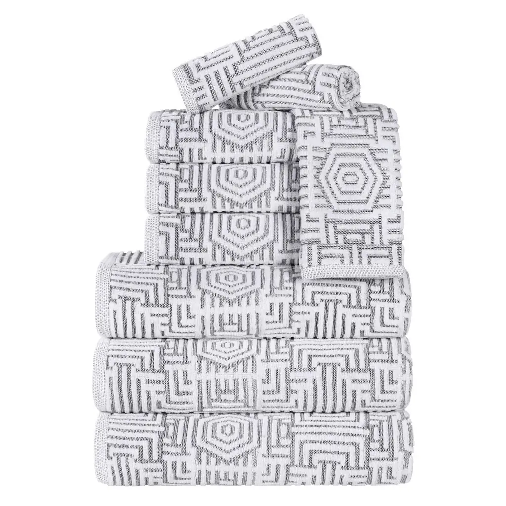 Superior Jasper Cotton Modern Jacquard Soft 9 Piece Bathroom Towel Set - Charcoal