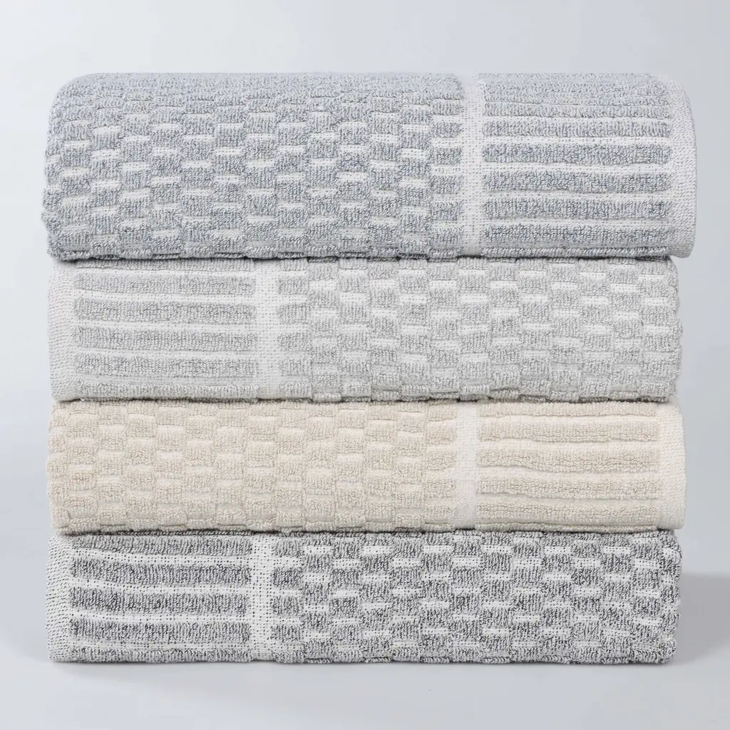 Experience the ultimate in comfort with the Superior Juno Viscose Cotton Blend 6 Piece Towel Set. Crafted from 80% cotton and 20% viscose, these towels offer exceptional softness, absorbency, and a unique aesthetic. The classic stripes combined with a playful checkered border create an eye-catching design that elevates any bathroom. Available in a diverse palette of elegant colors, this set allows you to personalize your space with style. With a soft medium towel weight, these towels are durable and quick drying. Let these towels transform your space into a serene haven of style and functionality.Features:Dimensions: