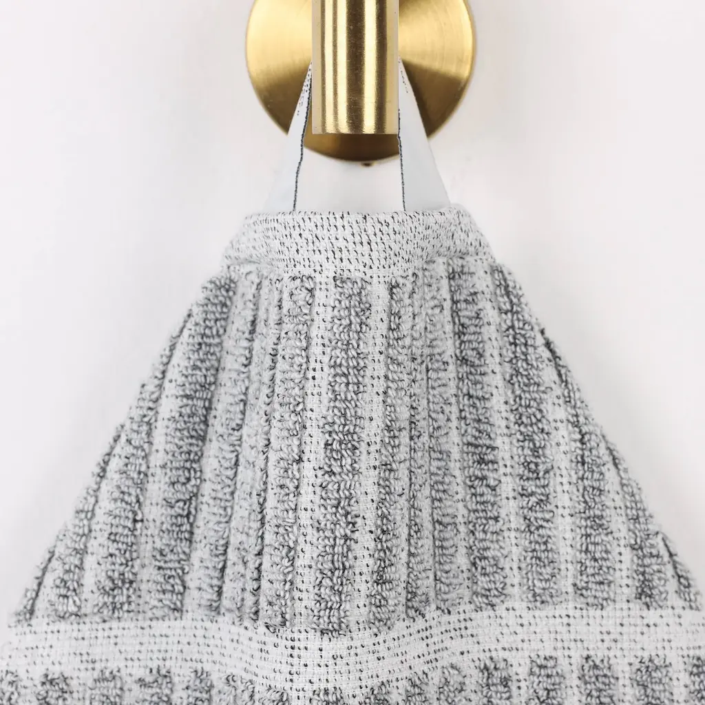 Experience the ultimate in comfort with the Superior Juno Viscose Cotton Blend 8 Piece Towel Set. Crafted from 80% cotton and 20% viscose, these towels offer exceptional softness, absorbency, and a unique aesthetic. The classic stripes combined with a playful checkered border create an eye-catching design that elevates any bathroom. Available in a diverse palette of elegant colors, this set allows you to personalize your space with style. With a soft medium towel weight, these towels are durable and quick drying. Let these towels transform your space into a serene haven of style and functionality.Features:Dimensions: