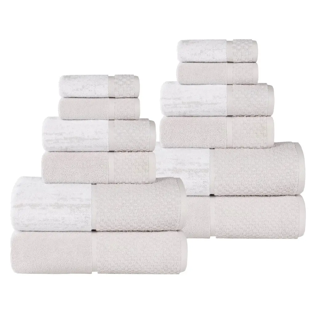 Superior Lodie Cotton Jacquard Solid And Two-Toned 12 Piece Towel Set - Stone/white