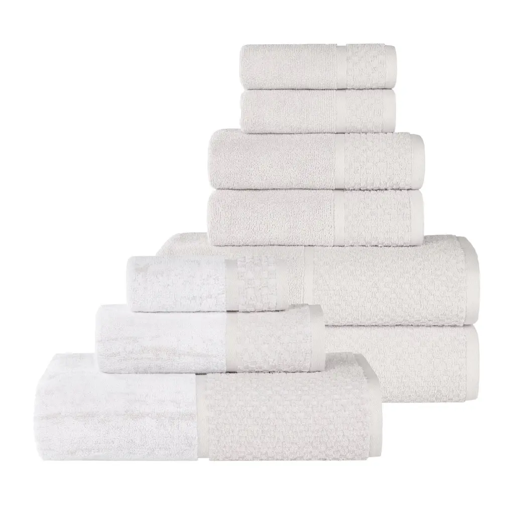 Superior Lodie Cotton Jacquard Solid And Two-Toned 9 Piece Towel Set - Stone/white