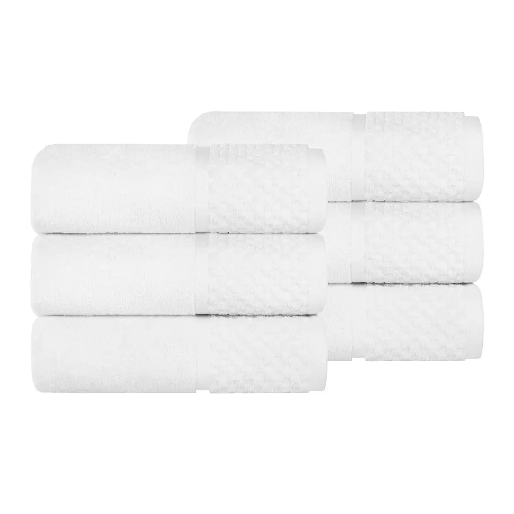 Superior Lodie Cotton Jacquard Solid And Two-Toned Hand Towel Set Of 6 - White/white