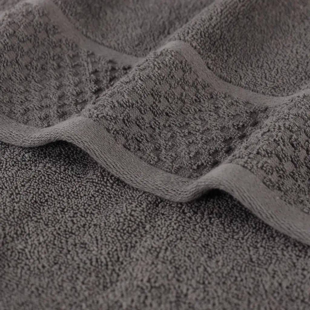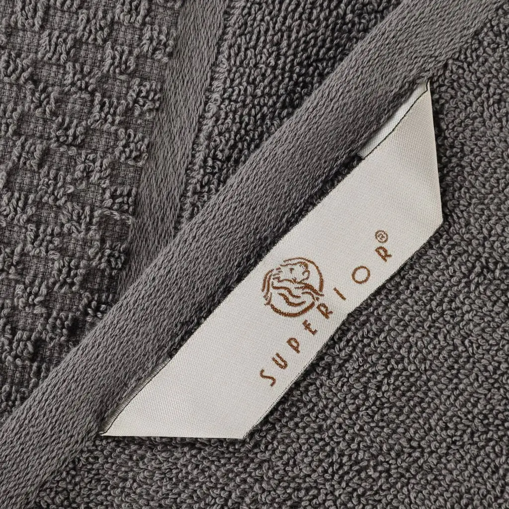 Superior Lodie Cotton Plush Absorbent Jacquard Solid 3 Piece Towel Set - Charcoal