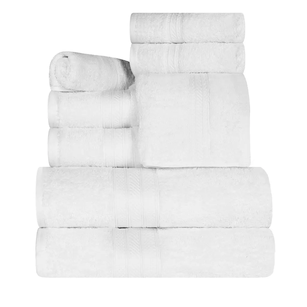 Superior Long Staple Cotton Ultra-Plush Solid 8-Piece Towel Set - White