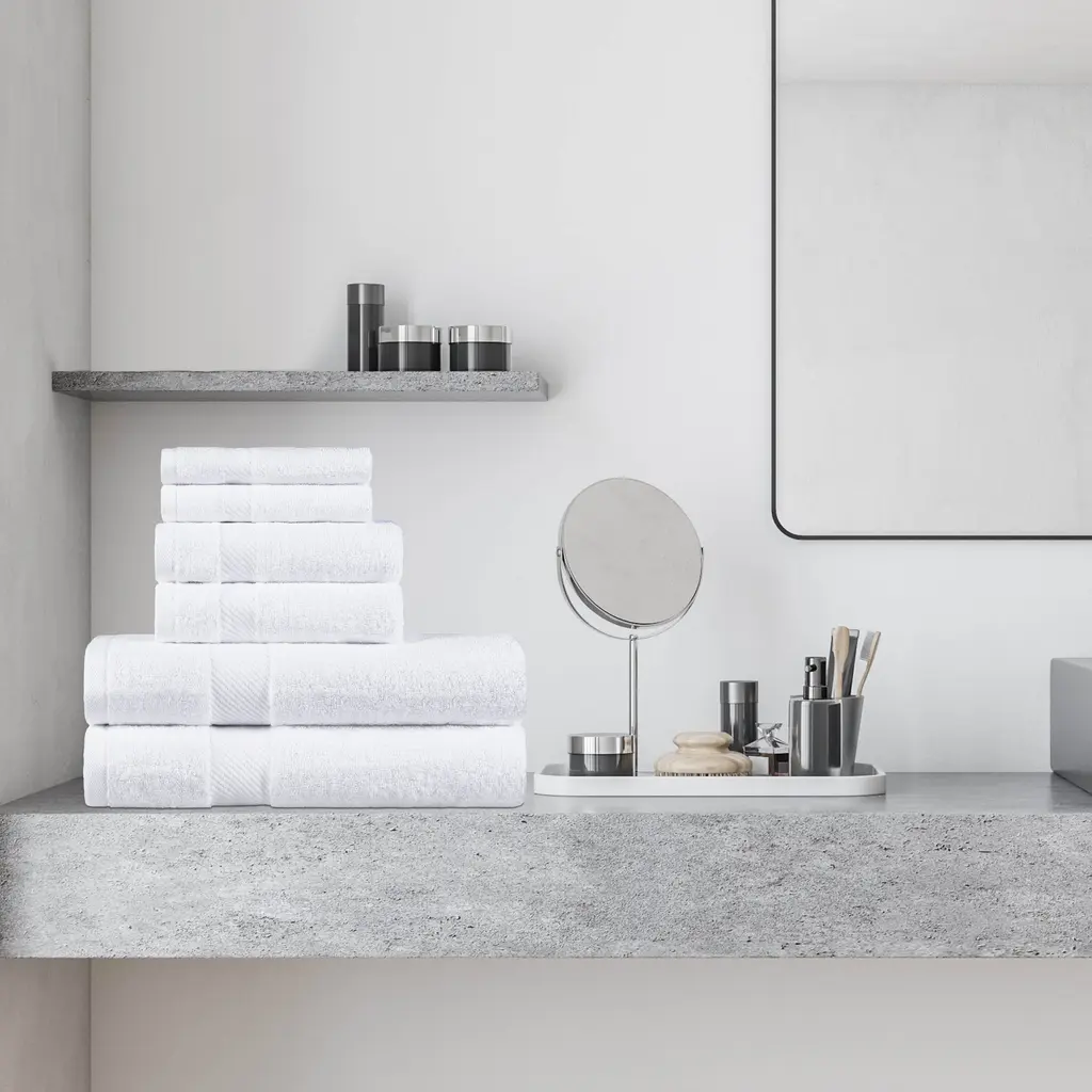 Superior Luxury Solid Highly Absorbent Egyptian Cotton 6 Piece Bath, Face, And Hand Towel Set - White