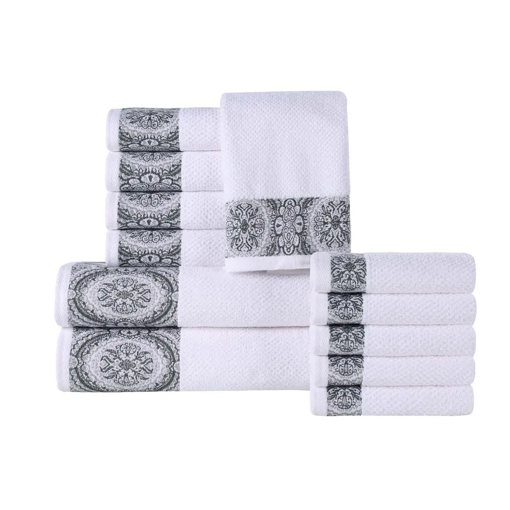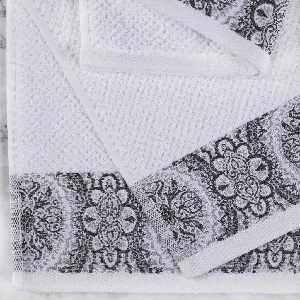 Superior Medallion Cotton Jacquard Texture 12 Piece Assorted Towel Set - White-Grey