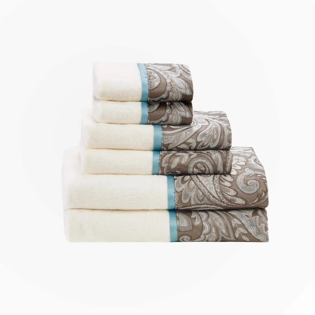 Create a calming aesthetic in your bathroom with the Superior Medallion Cotton Jacquard 12 Piece Assorted Towel Set. The naturally soft cotton material has a spa-like texture and soaks up moisture fast. Each towel is highly absorbent and has a medium weight to help you dry quickly after you step out of the shower or bath. Displaying a textured white pattern with a gorgeous colored medallion border, these towels will seamlessly elevate the mood of your space.Features:Dimensions: