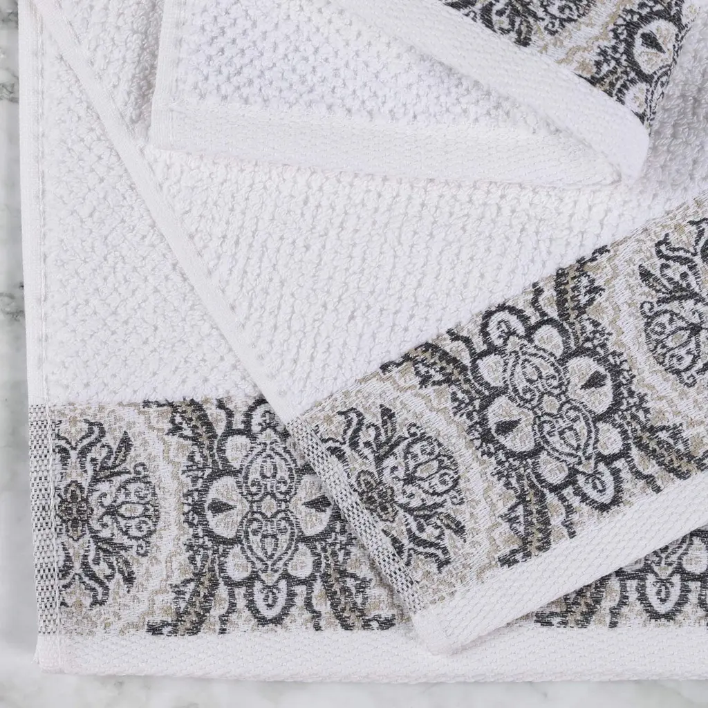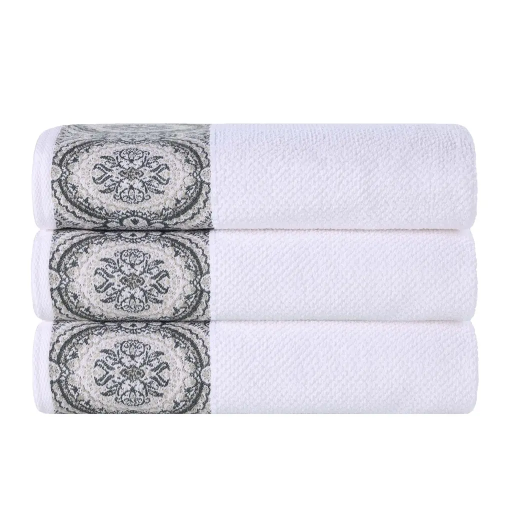 Superior Medallion Cotton Jacquard Textured Soft Bath Towel Set Of 3 - White-Stone