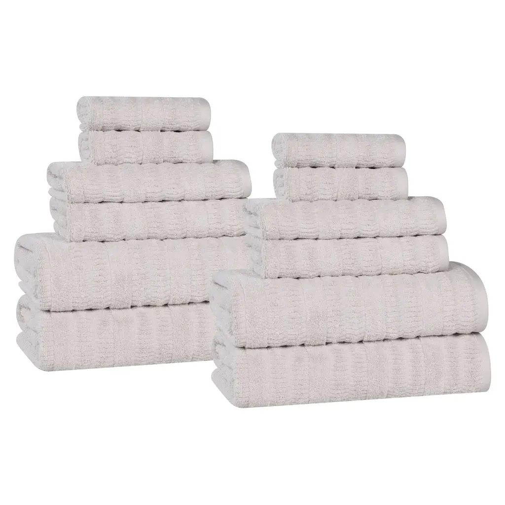 Upgrade your towel collection with the luxurious and absorbent Superior Mika Smart Twist Viscose Cotton Blend 12 Piece Towel Set, bringing spa-level comfort to your bathroom. Expertly made from a medium-weight Viscose Cotton Blend, these towels offer an exceptional combination of softness, absorbency, and refined style. The innovative low-twist weave delivers a velvety feel, while the delicate ribbed texture adds a sophisticated charm. Available in a curated range of colors, this set enhances your space with an inviting and tranquil atmosphere.Features:Dimensions: