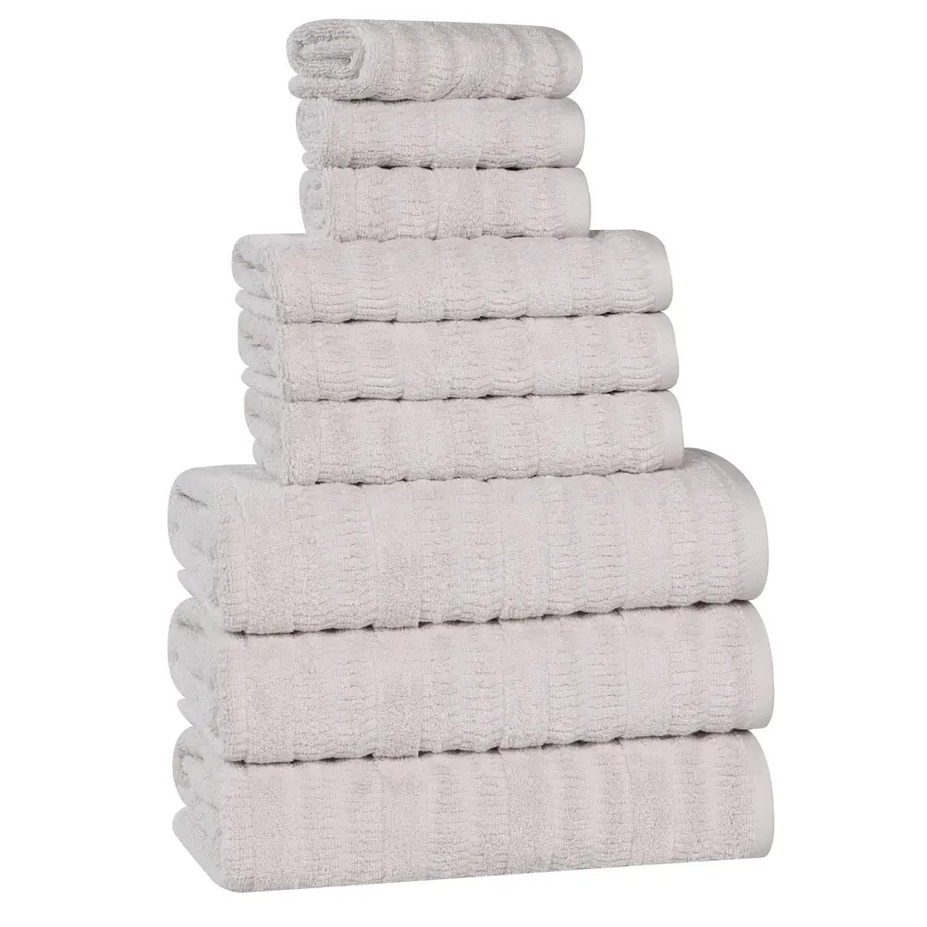 Superior Mika Smart Twist Viscose Cotton Blend 9 Piece Towel Set - Silver