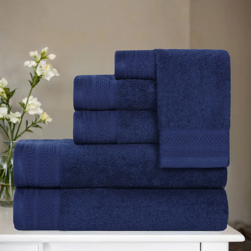 Superior Milo Smart Twist Viscose Cotton Blend 6 Piece Towel Set - Navy Blue