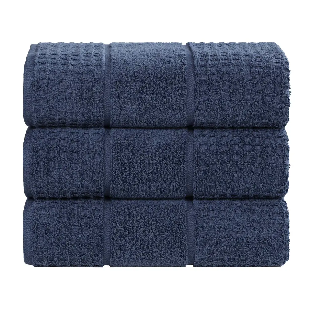 Superior Napa Zero Twist Cotton Soft Waffle Bath Towel Set Of 3 - Denim Blue