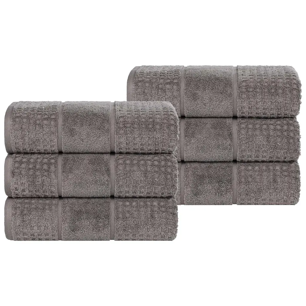 Superior Napa Zero Twist Cotton Soft Waffle Hand Towel Set Of 6 - Charcoal