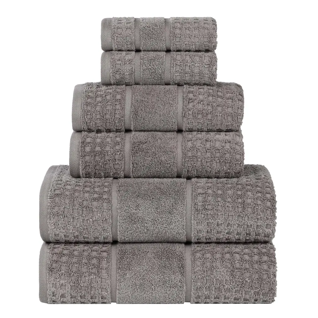 Superior Napa Zero Twist Cotton Waffle 6 Piece Bathroom Towel Set - Charcoal