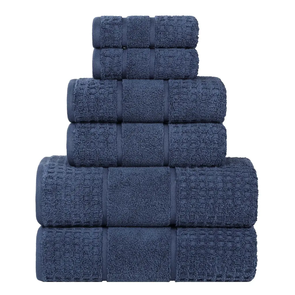 Superior Napa Zero Twist Cotton Waffle 6 Piece Bathroom Towel Set - Denim Blue