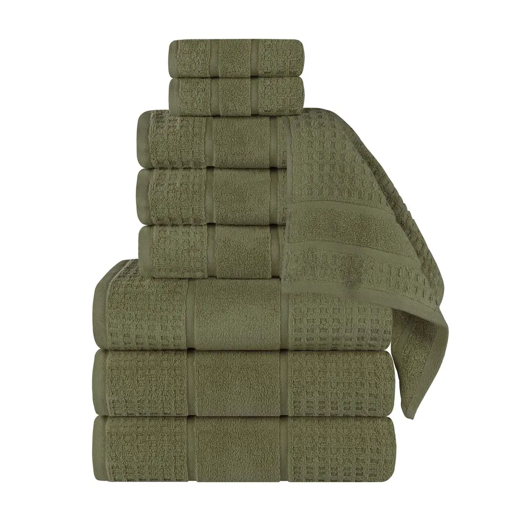 Superior Napa Zero Twist Cotton Waffle 9 Piece Bathroom Towel Set - Forest Green