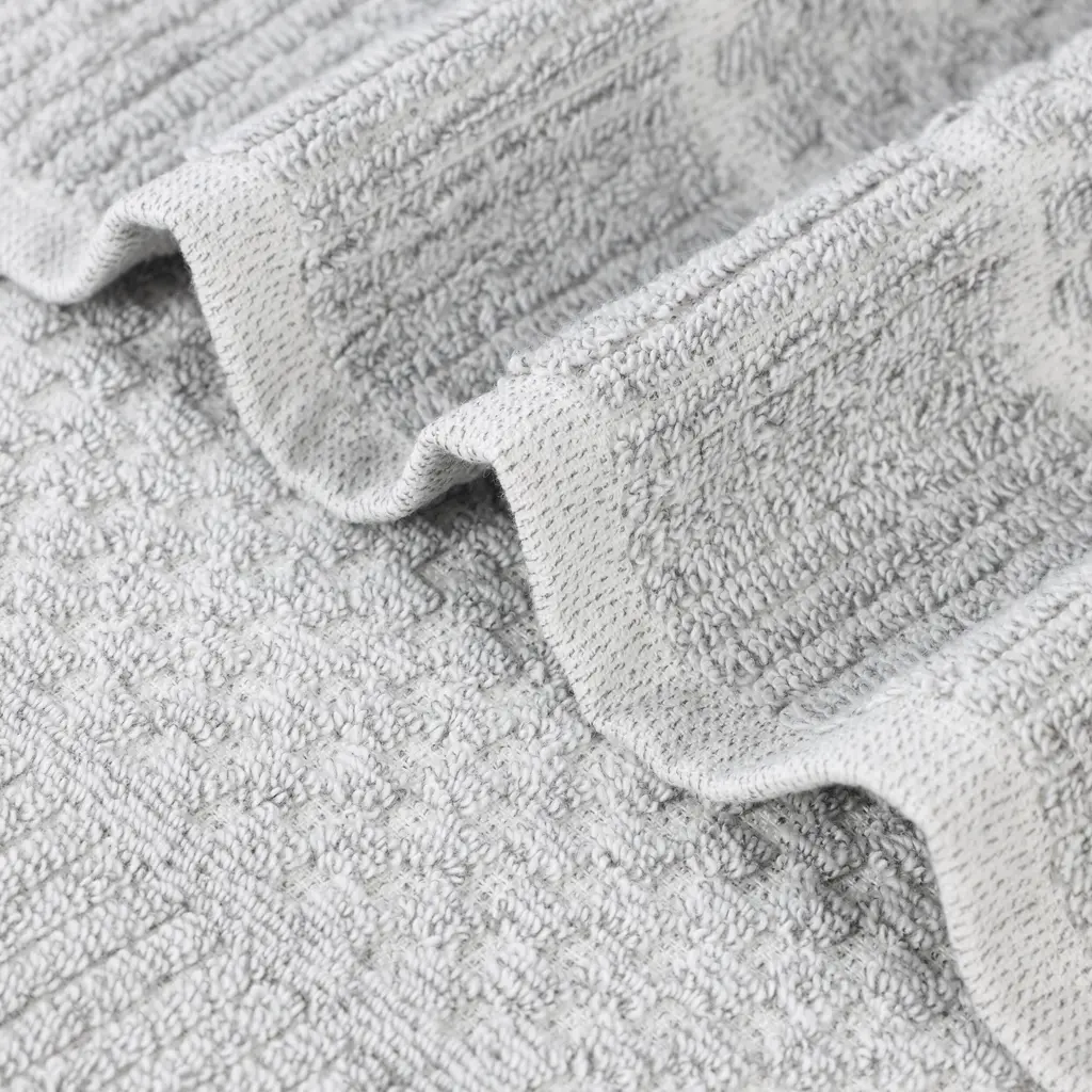 Indulge in everyday luxury with the Superior Naples Viscose Cotton Blend 8 Piece Towel Set. Crafted from 80% cotton and 20% viscose, these towels provide exceptional softness and absorbency while showcasing a unique aesthetic. The alternating checkered and ribbed design adds an eye-catching element that elevates any bathroom. Available in a diverse palette of elegant colors, this set allows you to personalize your space with style. With a soft medium towel weight, these towels are durable and quick drying. Let them transform your bathroom into a serene haven of style and functionality. Features: Dimensions: