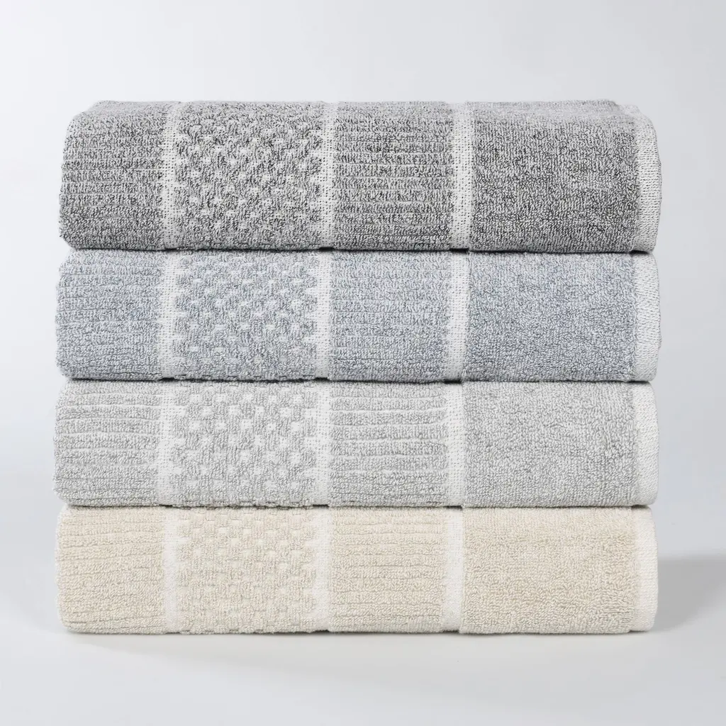 Indulge in everyday luxury with the Superior Naples Viscose Cotton Blend 9 Piece Towel Set. Crafted from 80% cotton and 20% viscose, these towels provide exceptional softness and absorbency while showcasing a unique aesthetic. The alternating checkered and ribbed design adds an eye-catching element that elevates any bathroom. Available in a diverse palette of elegant colors, this set allows you to personalize your space with style. With a soft medium towel weight, these towels are durable and quick drying. Let them transform your bathroom into a serene haven of style and functionality. Features: Dimensions: