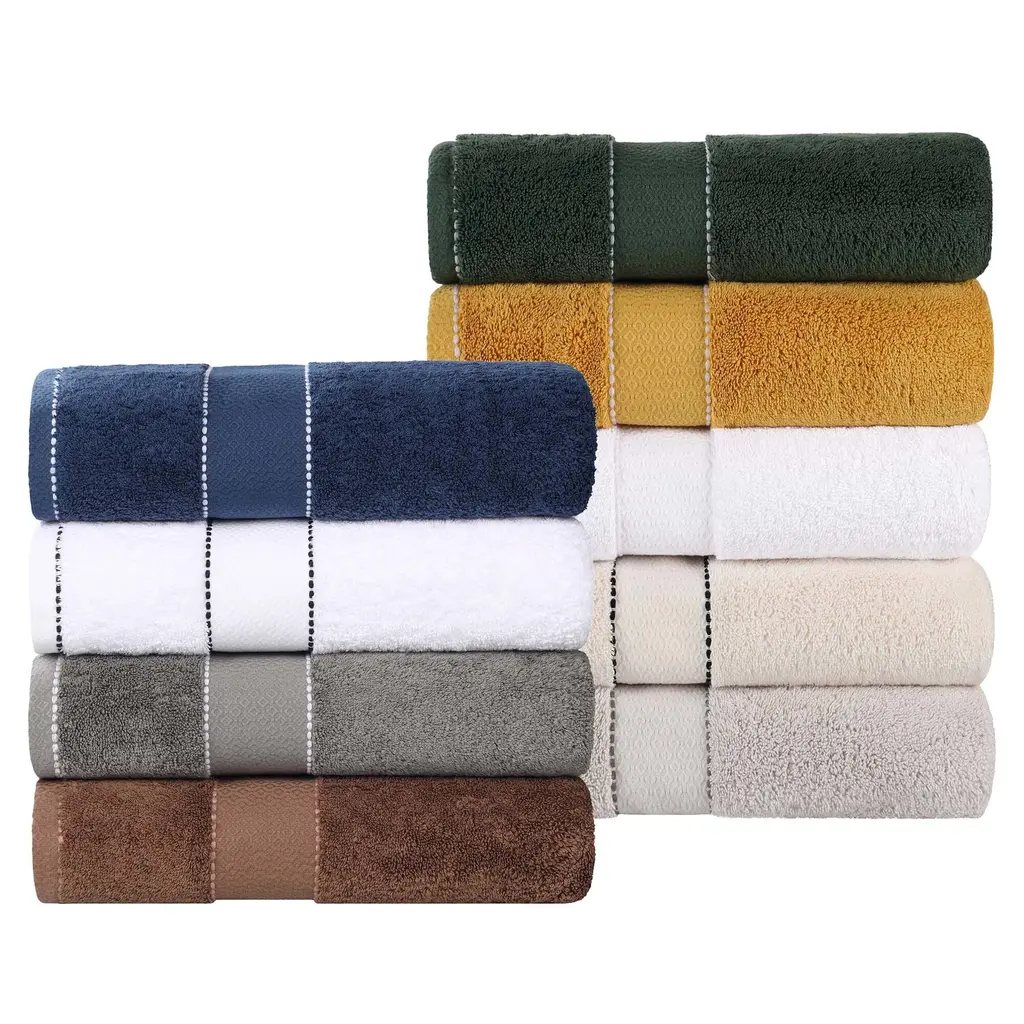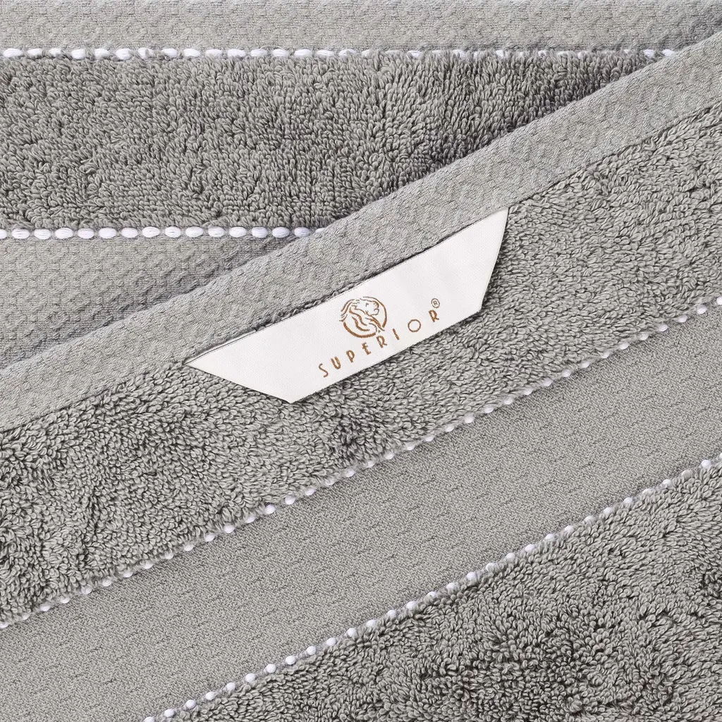 Elevate your bathroom aesthetics with the Superior Niles Cotton 12 Piece Towel Set. Our Egypt produced Giza Cotton towels feature impressive absorbency, a smooth texture, and silky feel for a luxury spa-like experience at home. The heavyweight thickness of each towel is durable and perfect for the bath, poolside, or at the beach. For a refined finish, each piece in this bundle features an elegant diamond dobby border and a hanging loop for effortless drying. These towels are available in Navy Blue, Charcoal, Chocolate, White/Black, White, Ivory, Platinum, Gold, and Forest Green color options to match your bathroom decor style. This set includes 4 face towel/ washcloths, 4 hand towels, and 4 bath towels to complete your bathroom essentials.Features:Dimensions: