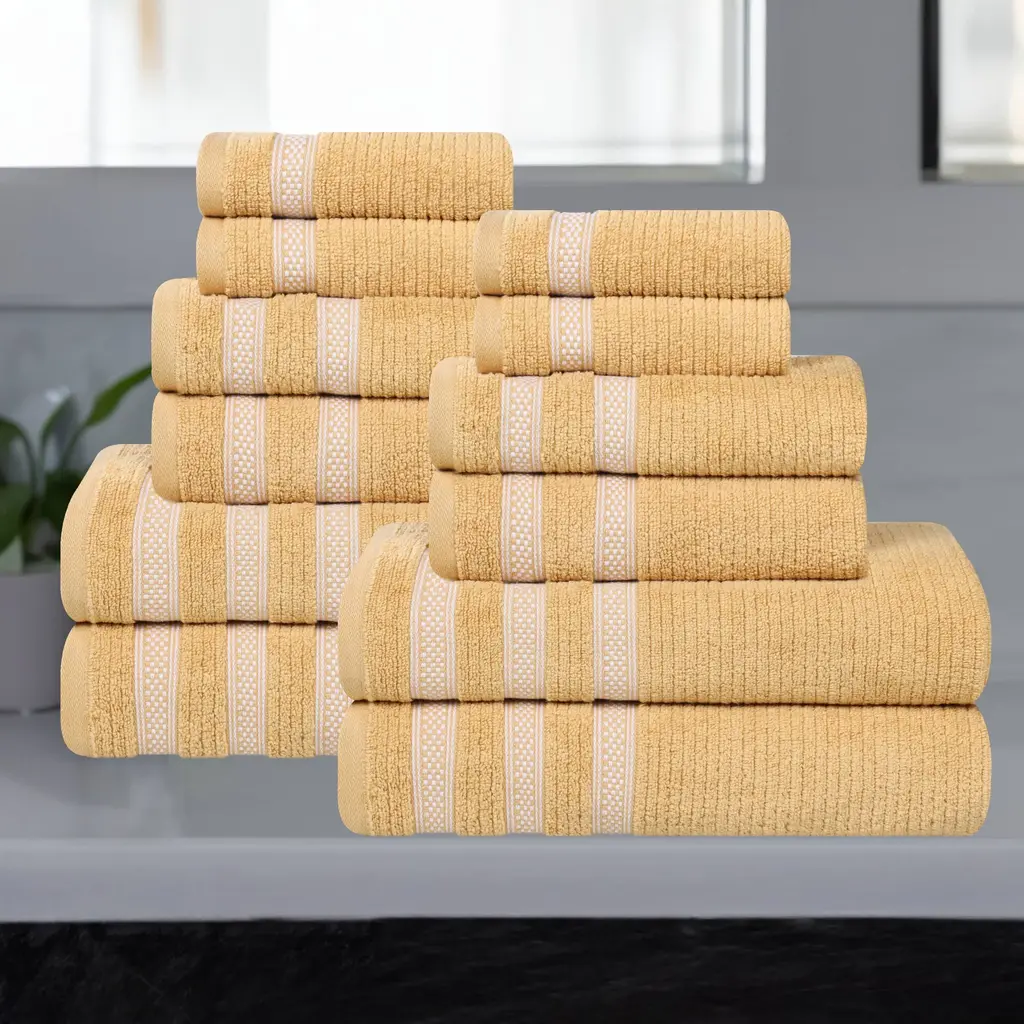 Superior Playa Zero Twist Cotton Solid Waffle Textured 6 Piece Towel Set - Gold
