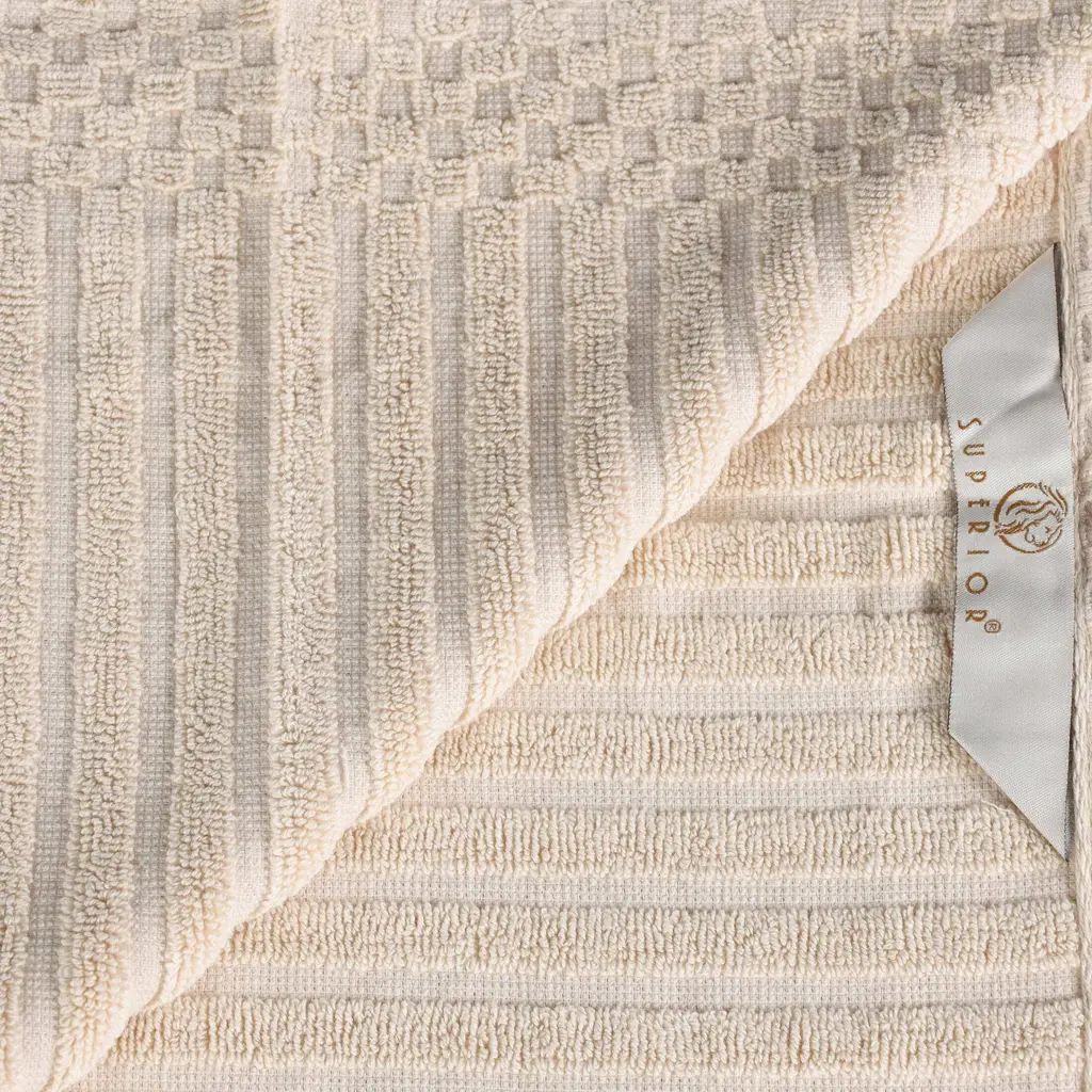 Superior Ribbed Cotton Absorbent Heavyweight Bath Sheet And Bath Towel Set - Ivory
