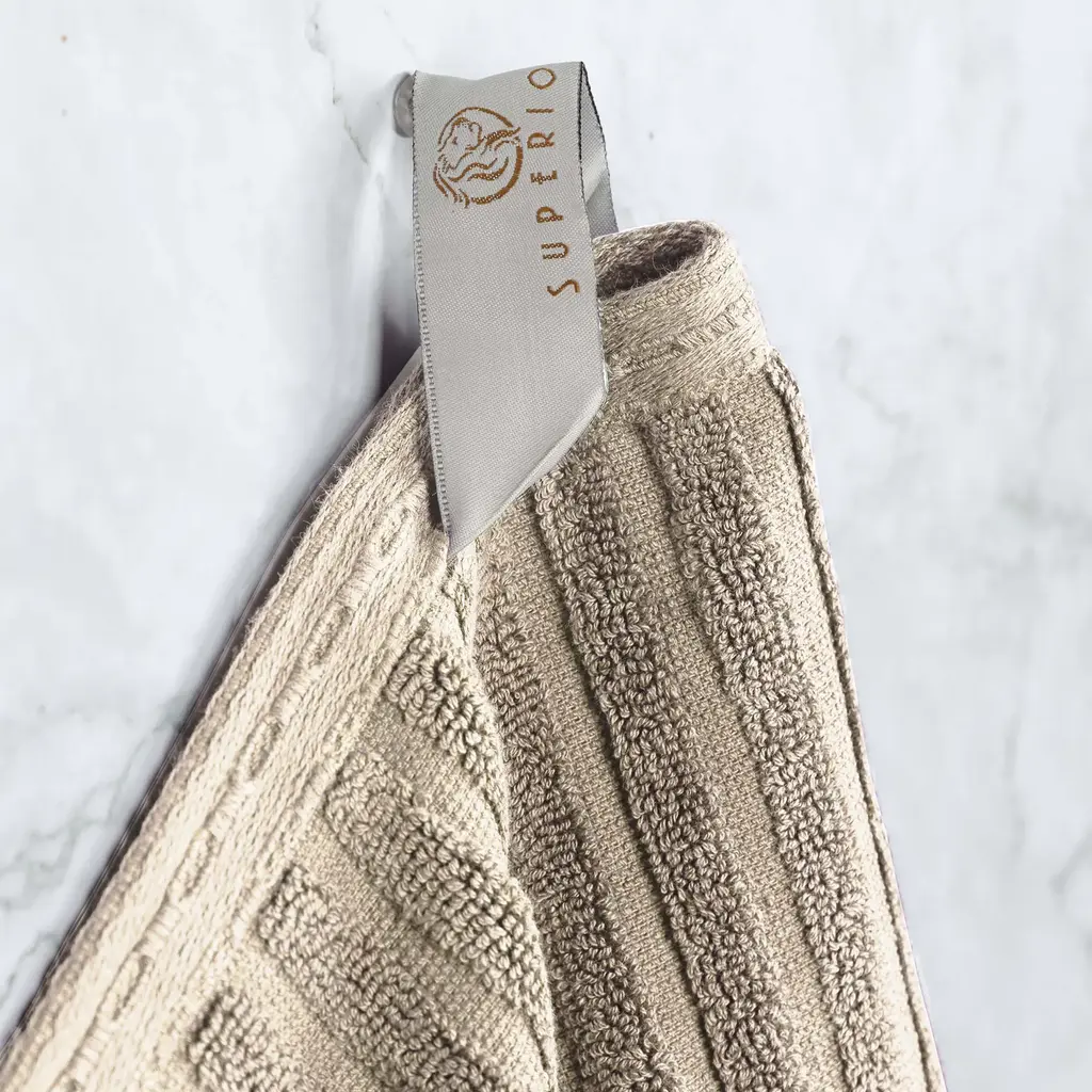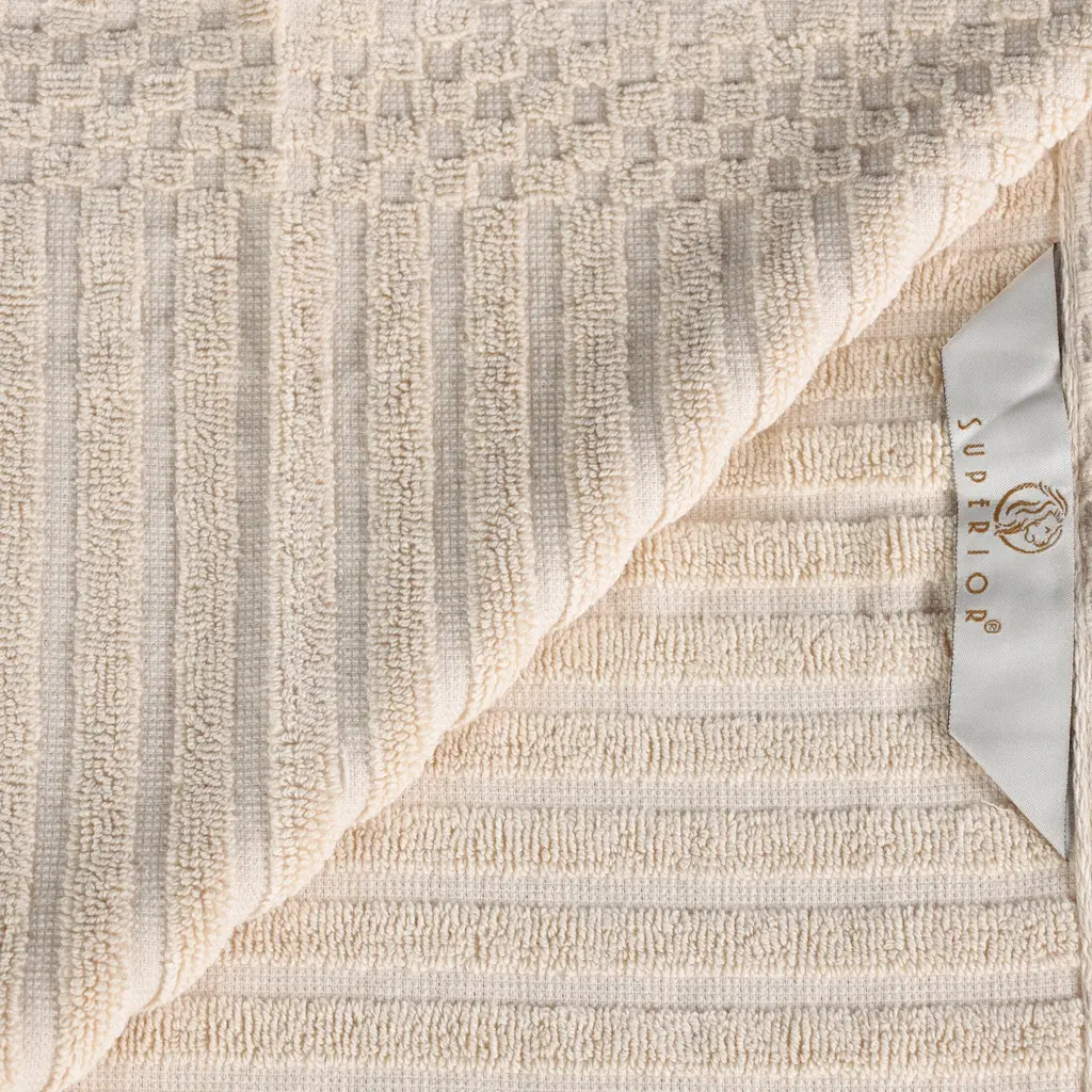 Superior Ribbed Cotton Absorbent Heavyweight Hand Towel And Bath Towel Set - Ivory