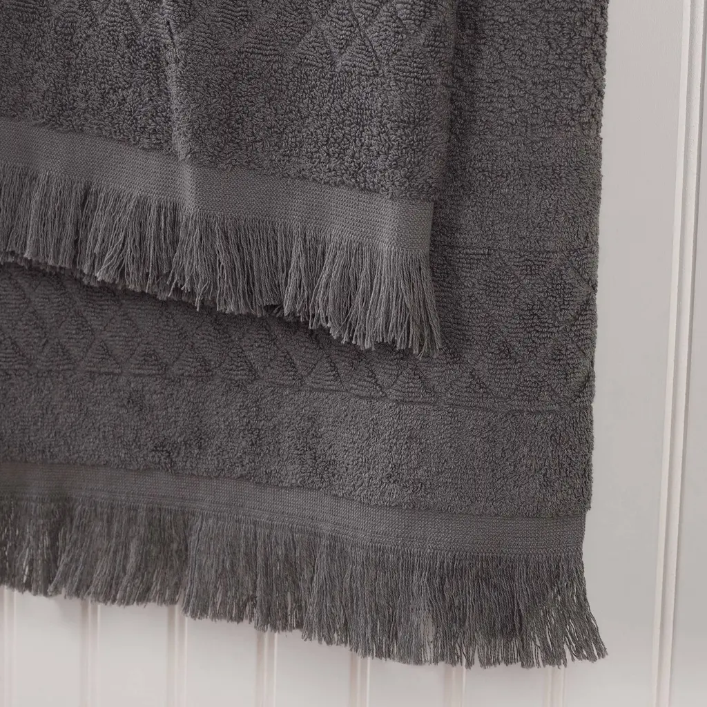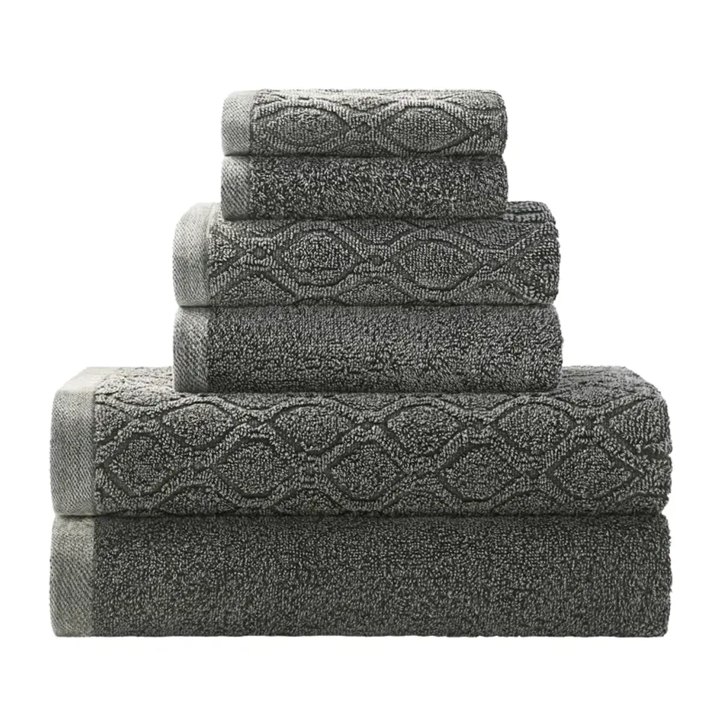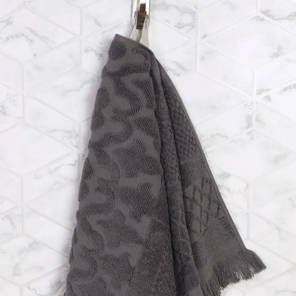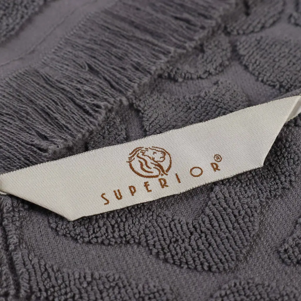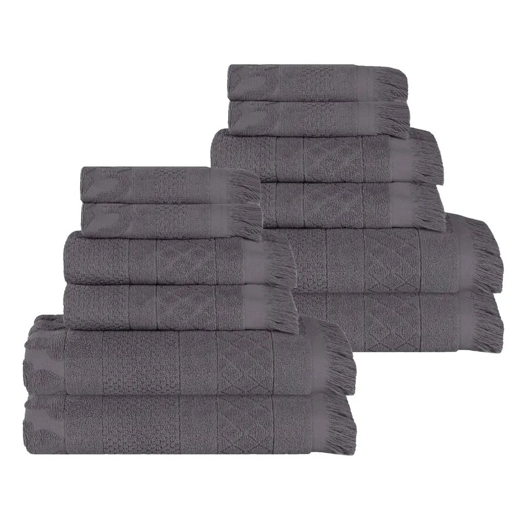Superior Rolla Cotton Geometric Jacquard Plush Soft 12 Piece Towel Set - Grey