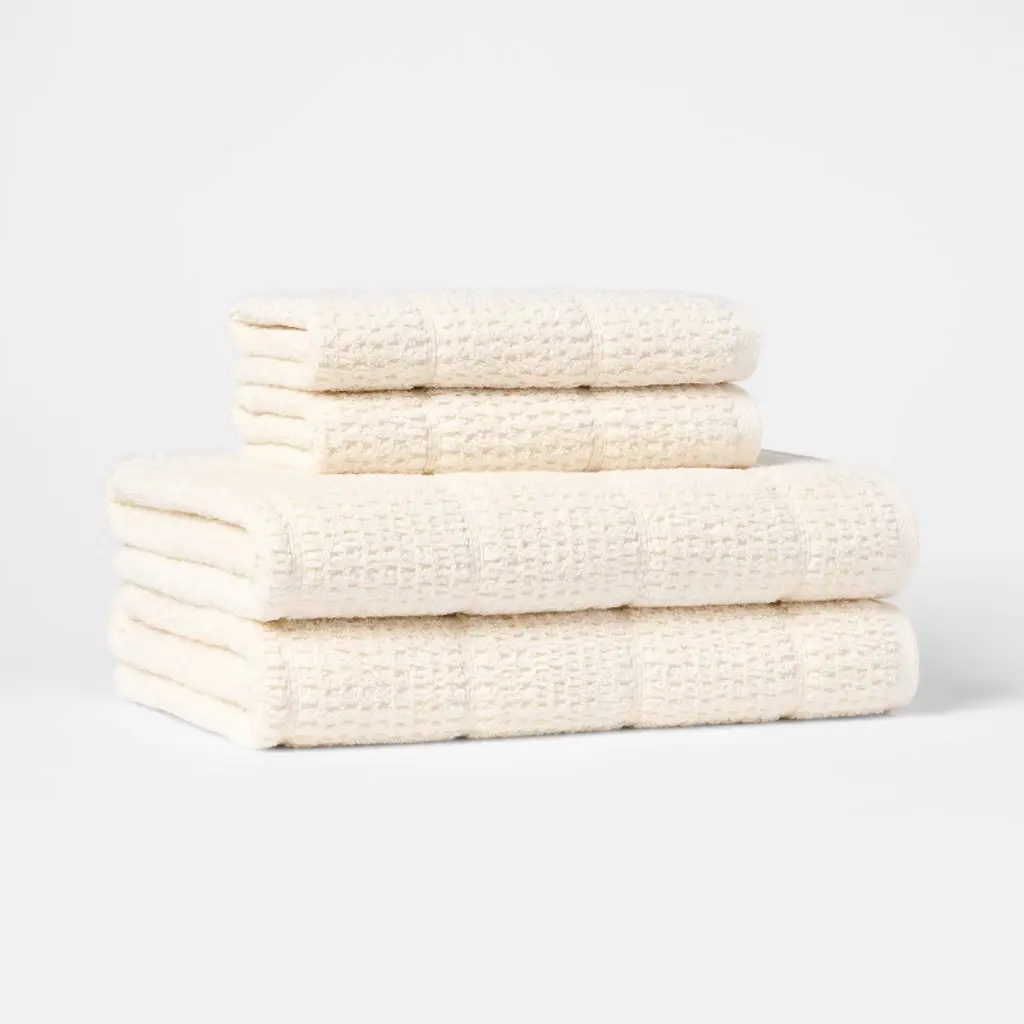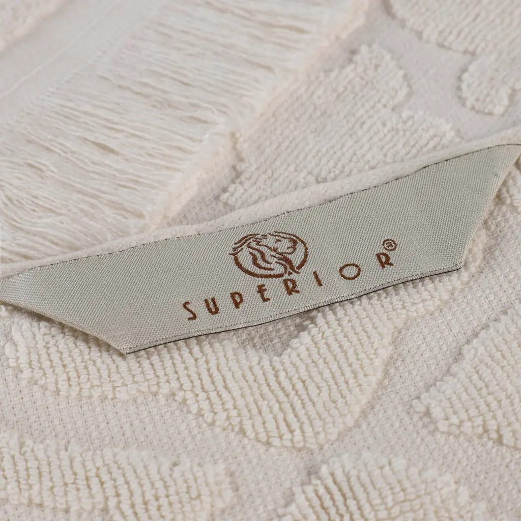 Superior Rolla Cotton Geometric Jacquard Plush Soft 12 Piece Towel Set - Ivory